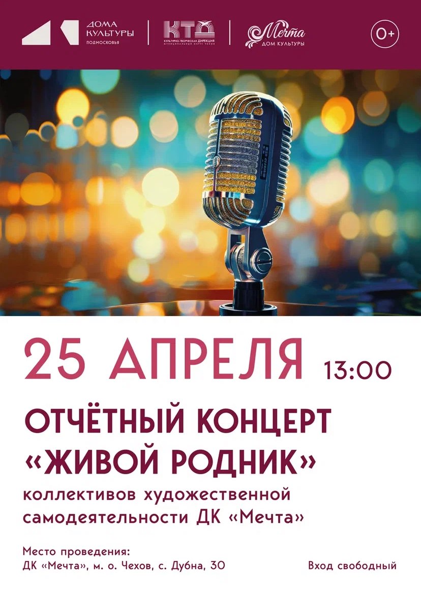 Приглашаем всех желающих посетить отчетный концерт творческих коллективов ДК «Мечта» м.о. Чехов