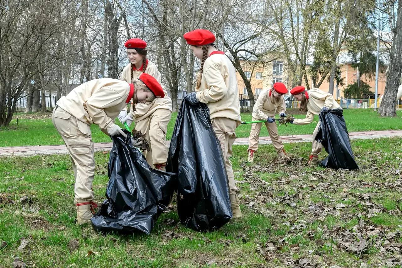 В рамках акции «Юнармейский субботник» юные жители округа вышли на уборку Парка Победы имени В.В. Талалихина