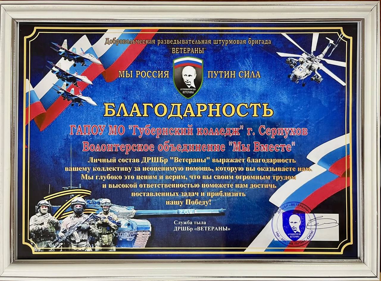 Колледж получил благодарность от добровольческой штурмовой бригады «Ветераны» - за вклад и поддержку. Это важное признание общей работы и неравнодушия.