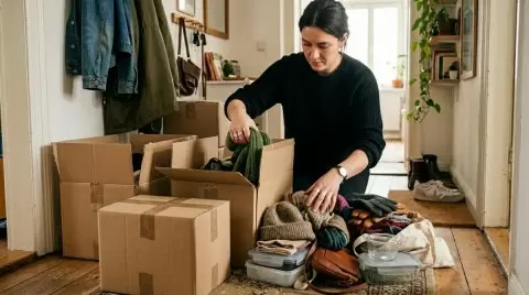 Перебирать каждую вещь и отправлять её в одну из четырех коробок: оставить, отдать, продать или утилизировать. На каждую вещь стоит тратить не более 10 секунд, если это не что-то особенно памятное.