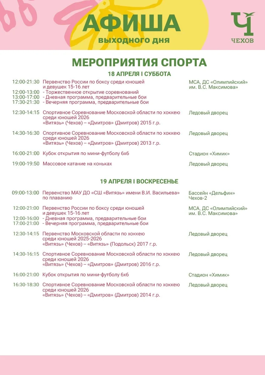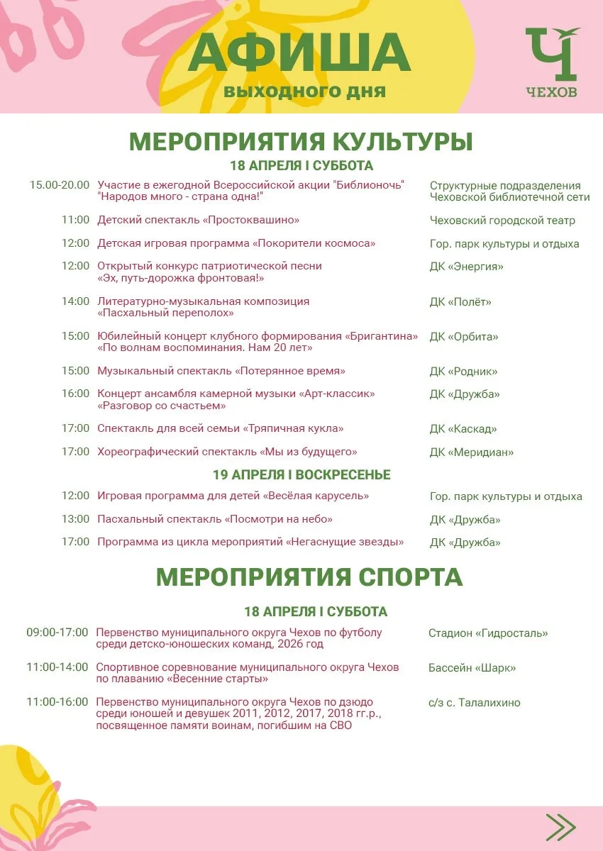 В эти выходные наши культурные и спортивные учреждения подготовили для вас мероприятия, которые пройдут на различных площадках округа.