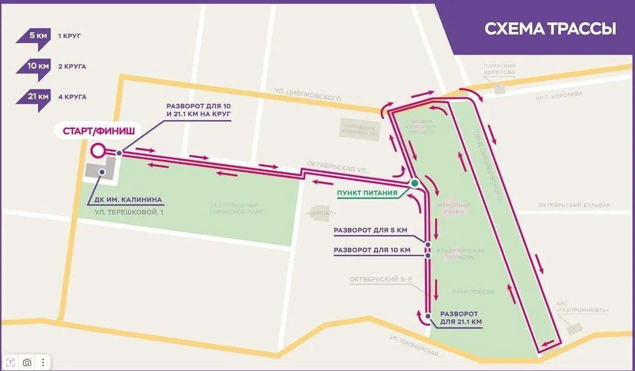 Соревнования соберут как профессиональных спортсменов, так и любителей бега. Для участников подготовлены дистанции на выбор: от 5 до 21 километра. Для юных спортсменов организованы отдельные забеги на 500 метров и 1 километр.