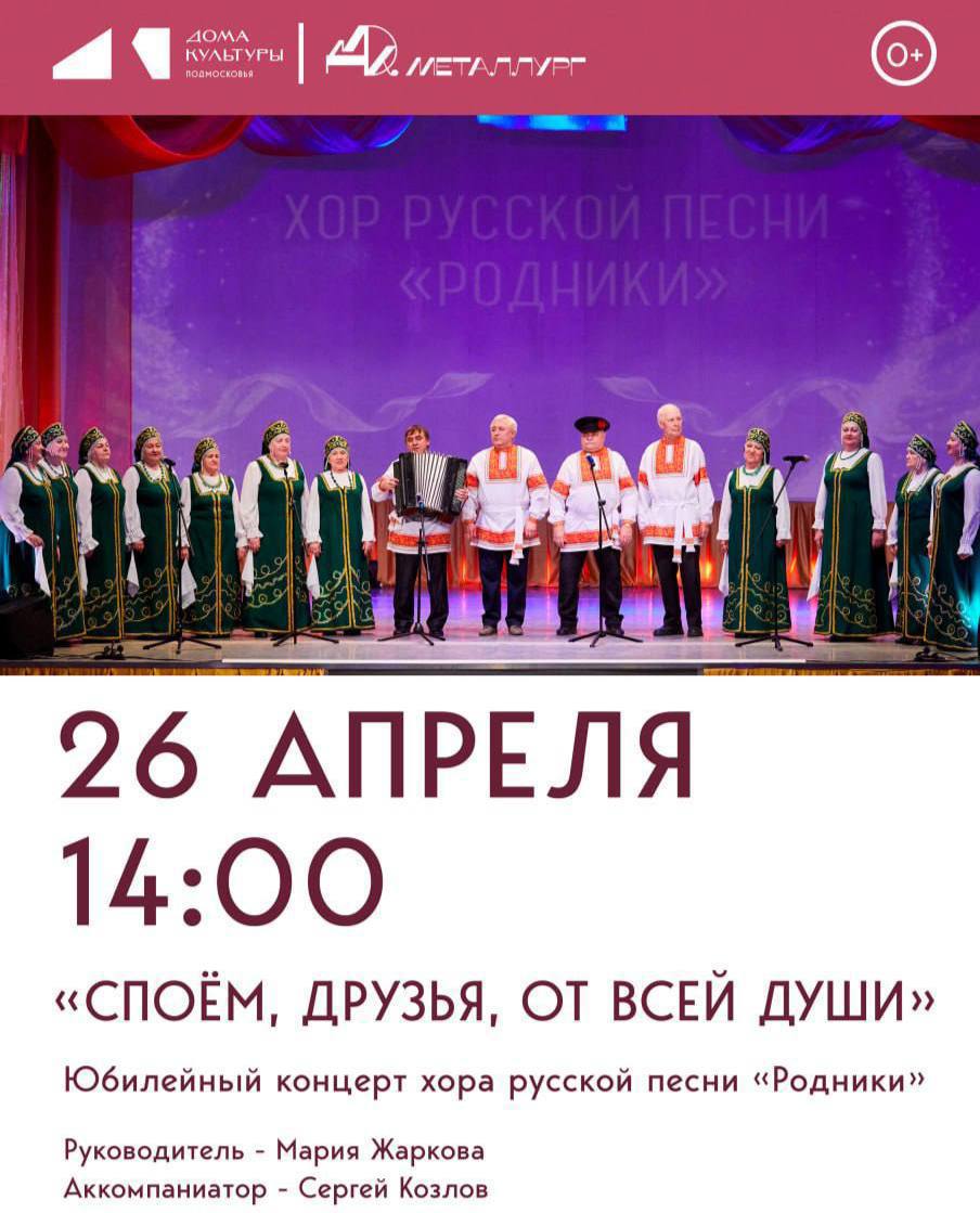 Хор существует уже более 30 лет, он давно полюбился жителям микрорайона Львовский. Под руководством Марии Жарковой и в сопровождении Сергея Козлова «Родники» подарят зрителям настоящий праздник русской народной песни.