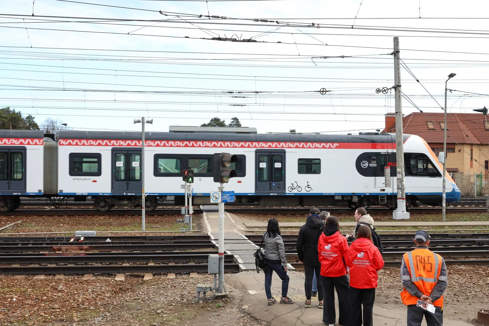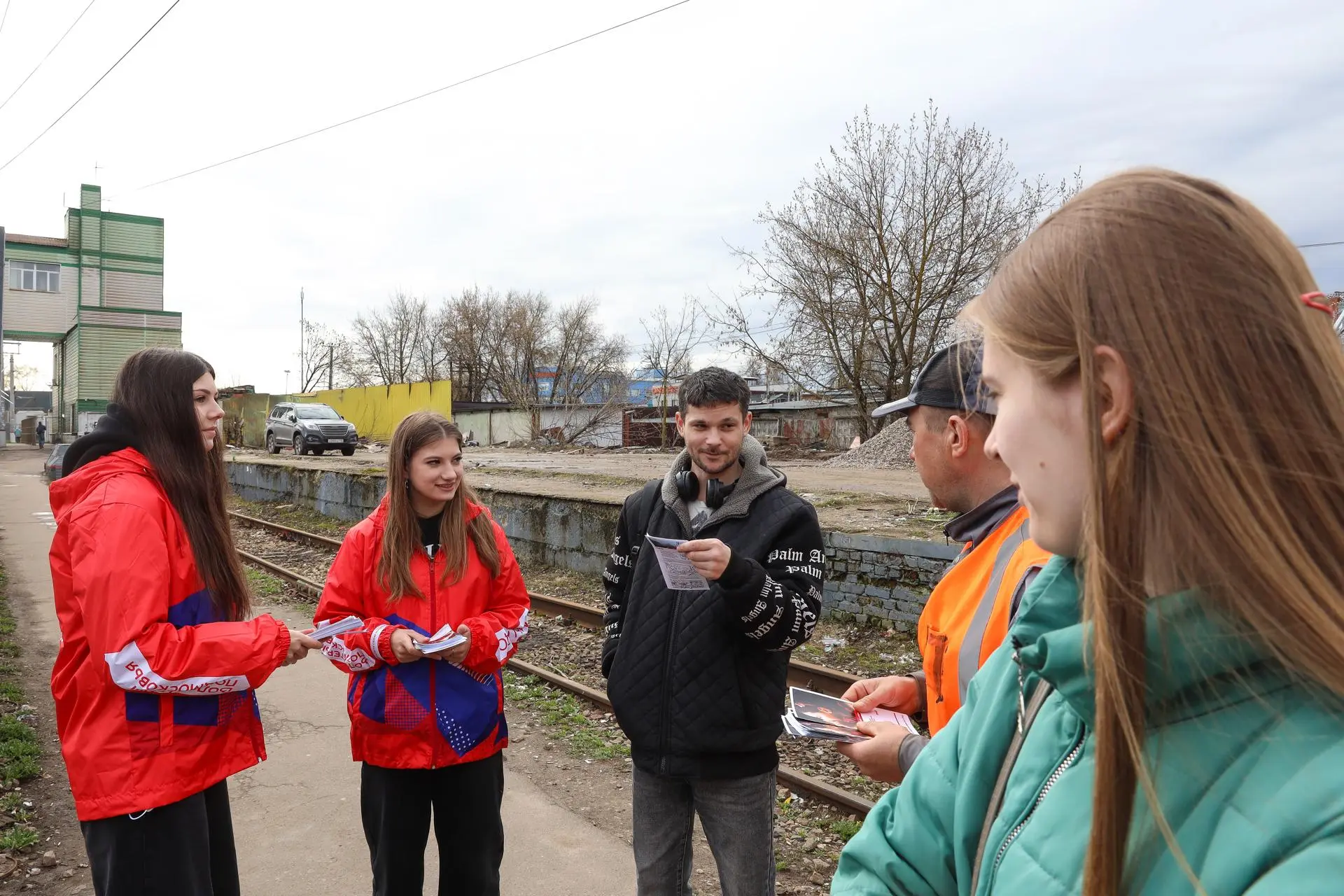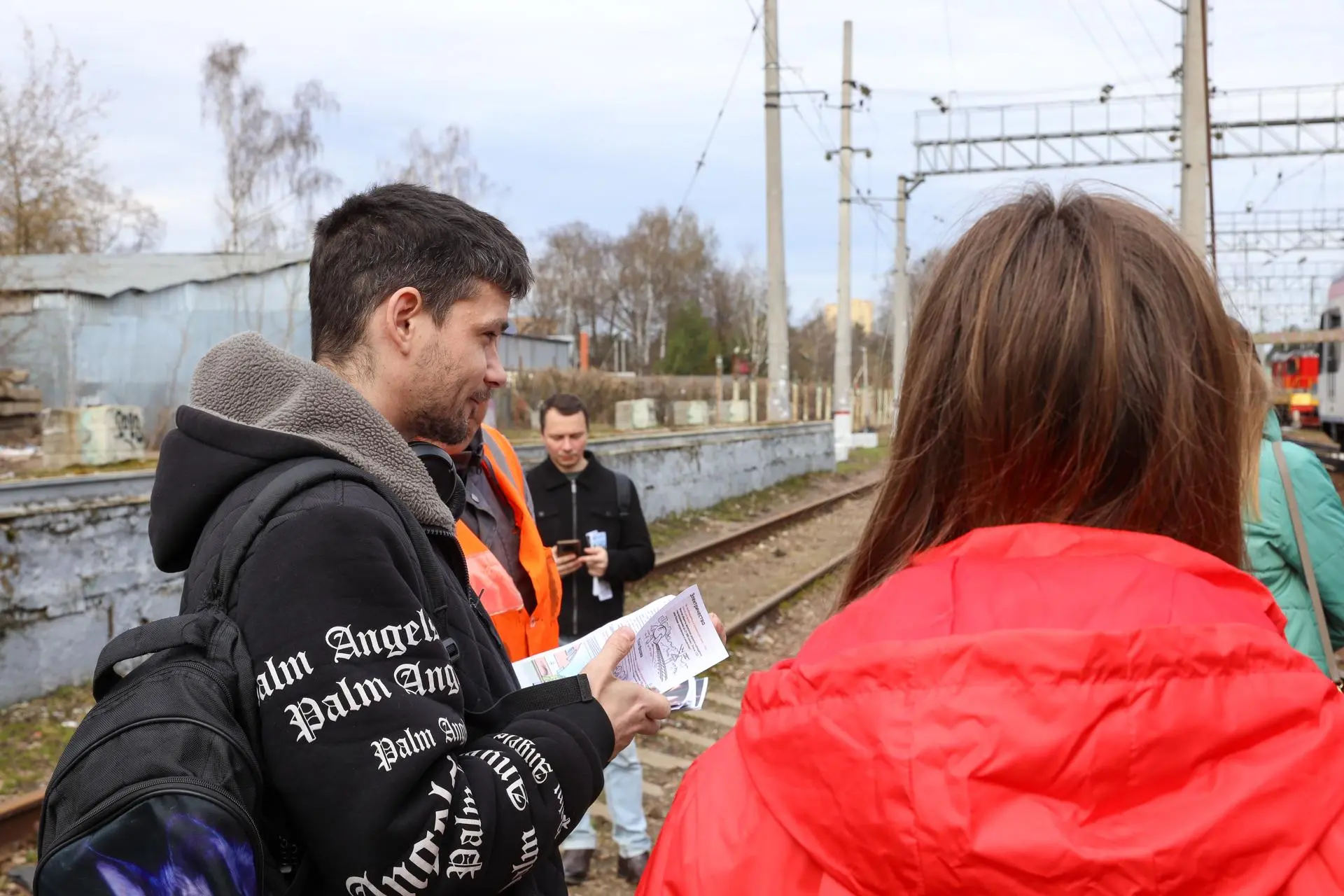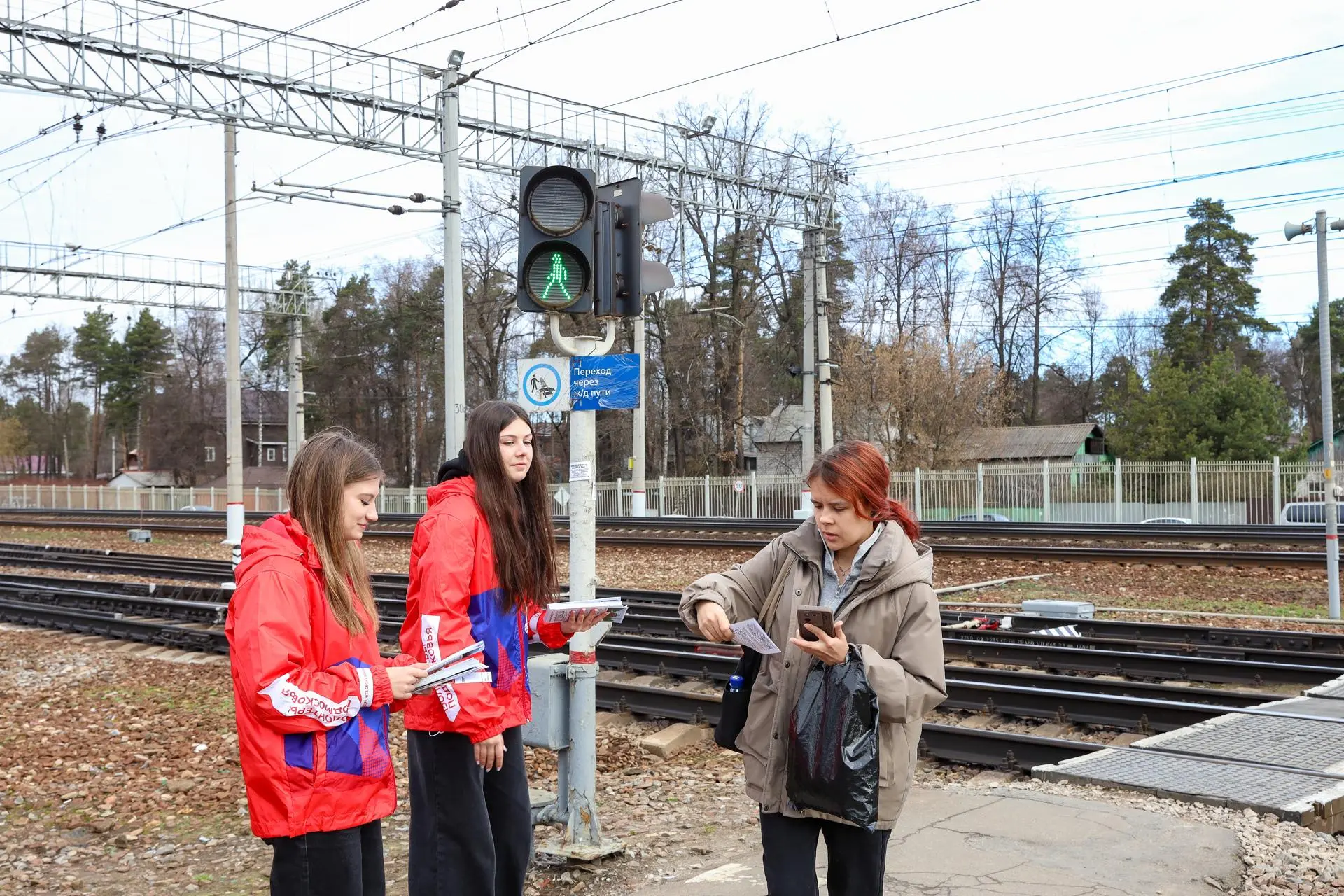 В зоне пешеходного перехода раменские волонтёры раздали прохожим информационные листовки. В них рассказывается о безопасном переходе через железную дорогу. Пересекать рельсовые пути следует только на зелёный сигнал светофора и в предназначенном для этого месте.