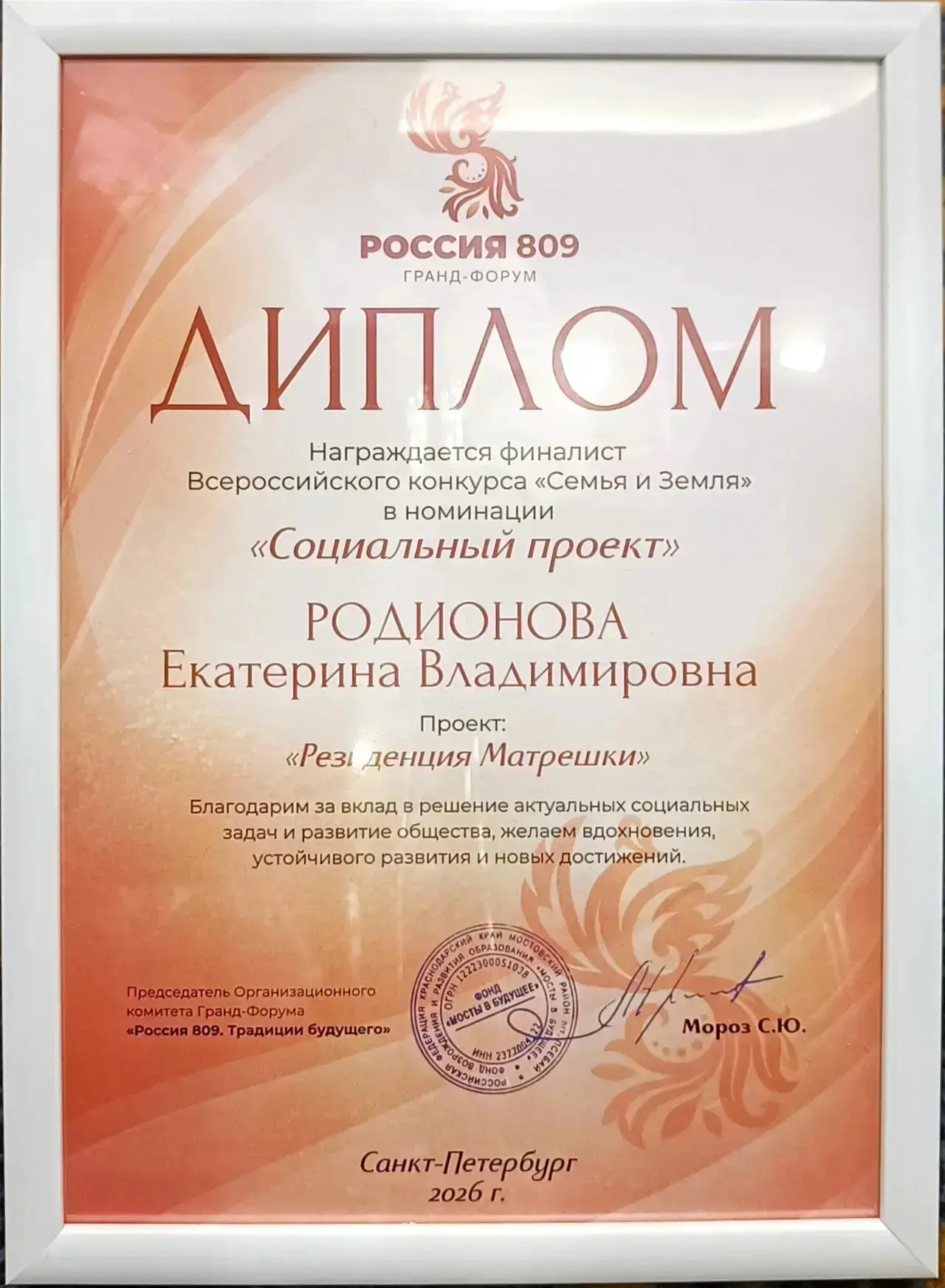 Сегодня в Санкт-Петербурге на гранд-форуме «Россия 809» состоялось торжественное награждение финалистов Всероссийского конкурса «Семья и Земля» в номинации «Социальный проект».