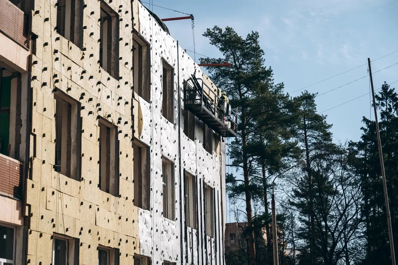 крепление утеплителя и ветрозащитной мембраны на фасаде.