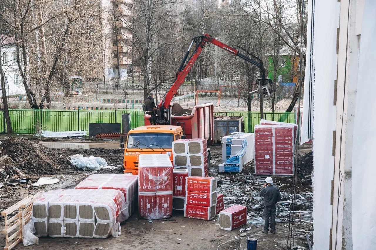 В школе №24 имени С. А. Красовского в Монино на улице Баранова активно продолжается капитальный ремонт