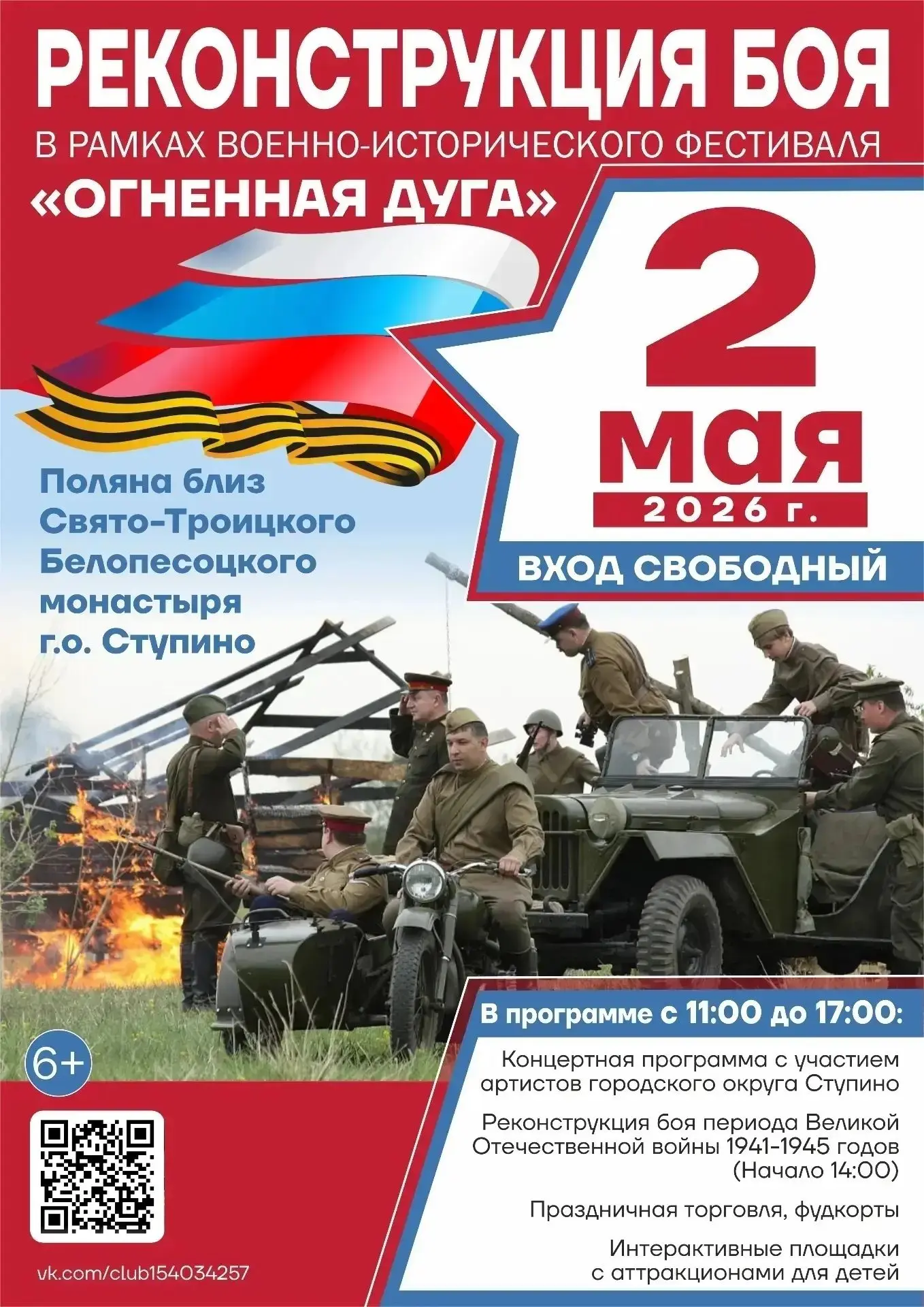В субботу, 2 мая 2026 года, на открытой местности вблизи Свято-Троицкого Белопесоцкого монастыря пройдет военно-исторический фестиваль «Огненная дуга». Мероприятие, посвященное событиям Великой Отечественной войны 1941–1945 годов, будет сопровождаться реконструкцией одного из эпизодов боевых действий.