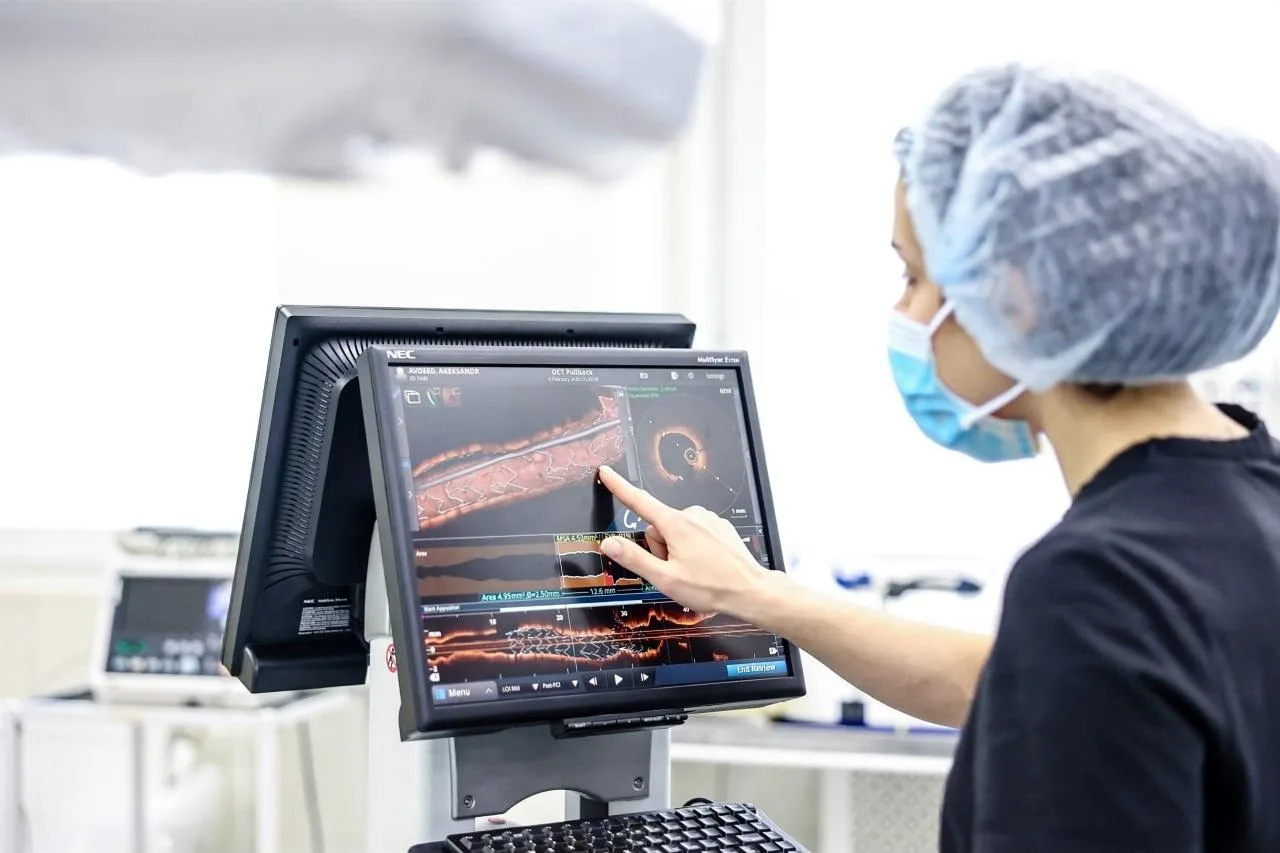 Важнейшее оборудование, помогающее повысить эффективность лечения и диагностики сердечных заболеваний, появилось в операционной. Это аппарат для проведения оптической когерентной томографии сердца и для измерения фракционного резерва кровотока. Он позволяет получить детальные изображения сосуда и бляшек, от чего зависит необходимость стентирования сердца. Еще один аппарат, предназначенный для коронарной ротационной атерэктомии, дает возможность избавиться от излишек кальция и раскрыть стент. Только за прошлый год в нашей больнице было проведено почти 2 тысячи операций стентирования.
