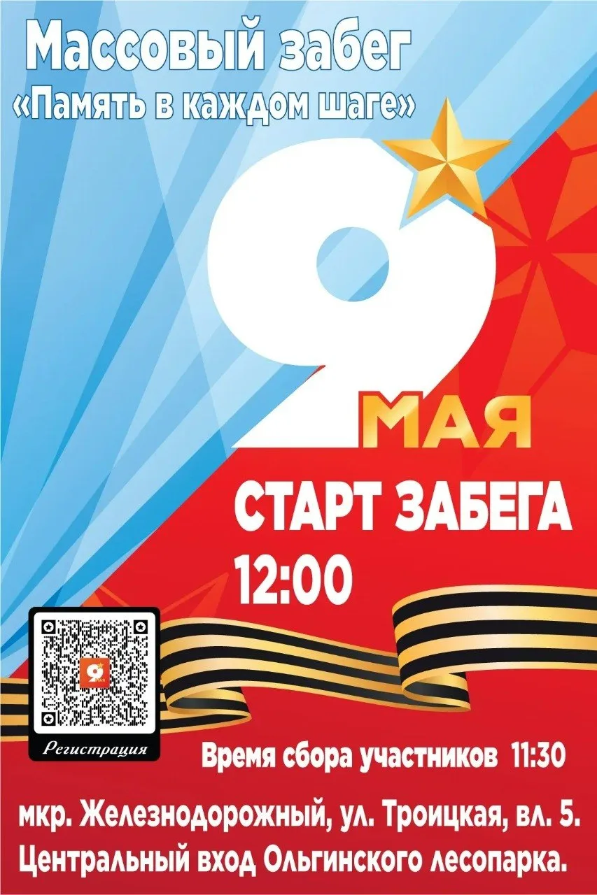 Жители Балашихи могут принять участие в акции «Память в каждом шаге», посвященной Дню Победы. Массовый забег пройдет 9 мая в 12:00 в Ольгинском лесопарке.
