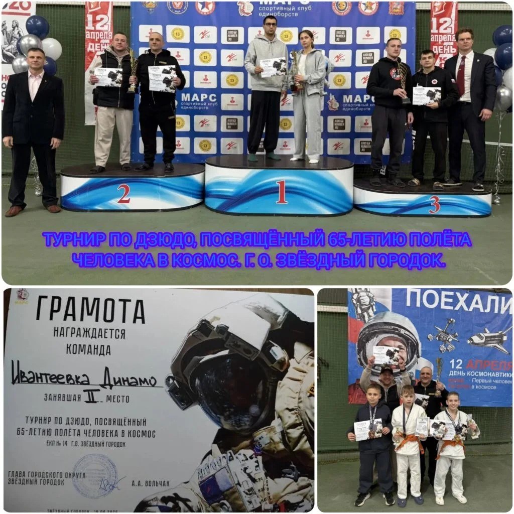 19 апреля в Звёздном городке прошла схватка на татами, посвящённая 65-летию первого полёта человека в космос. Наши спортсмены, воспитанники спортклуба «Динамо-Ивантеевка» продемонстрировали высочайший уровень мастерства, принеся команде заслуженные