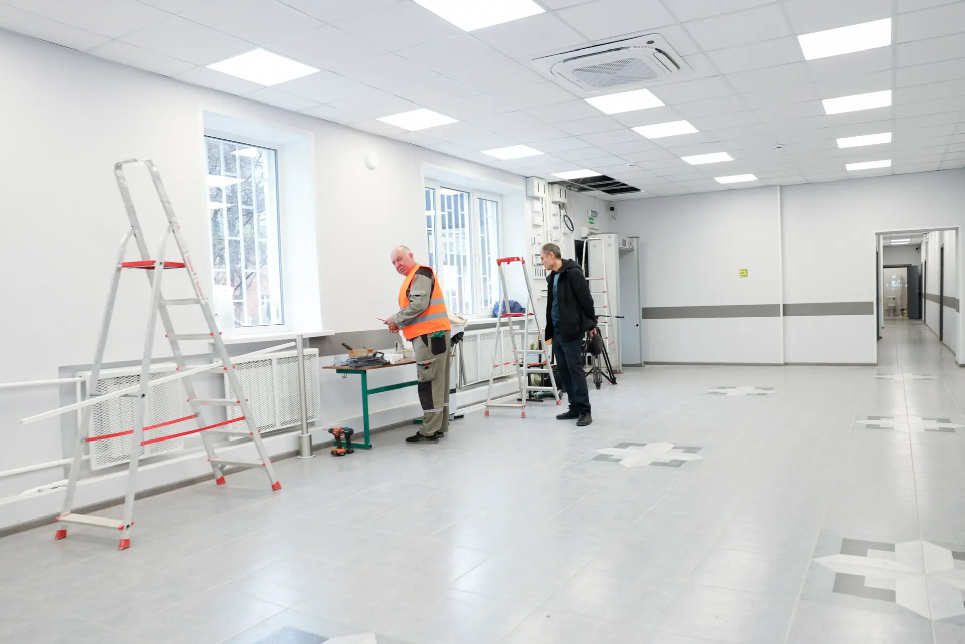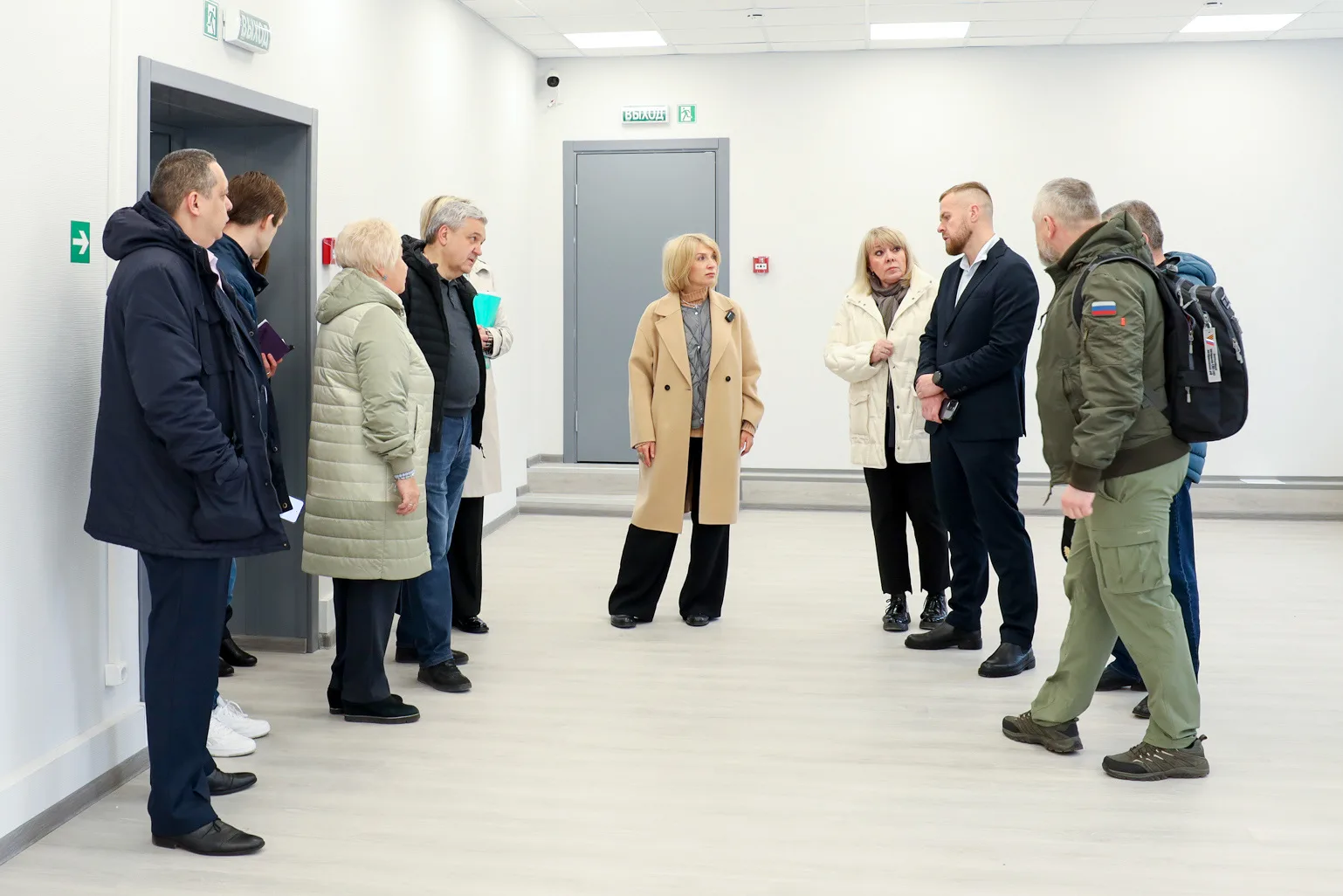 На этой неделе в помещениях завершаются строительно-монтажные работы. Выполнено устройство кабинетов, конференц-залов, санузлов, в том числе для маломобильных граждан. Техническое оборудование завезено, остается смонтировать и подключить.
