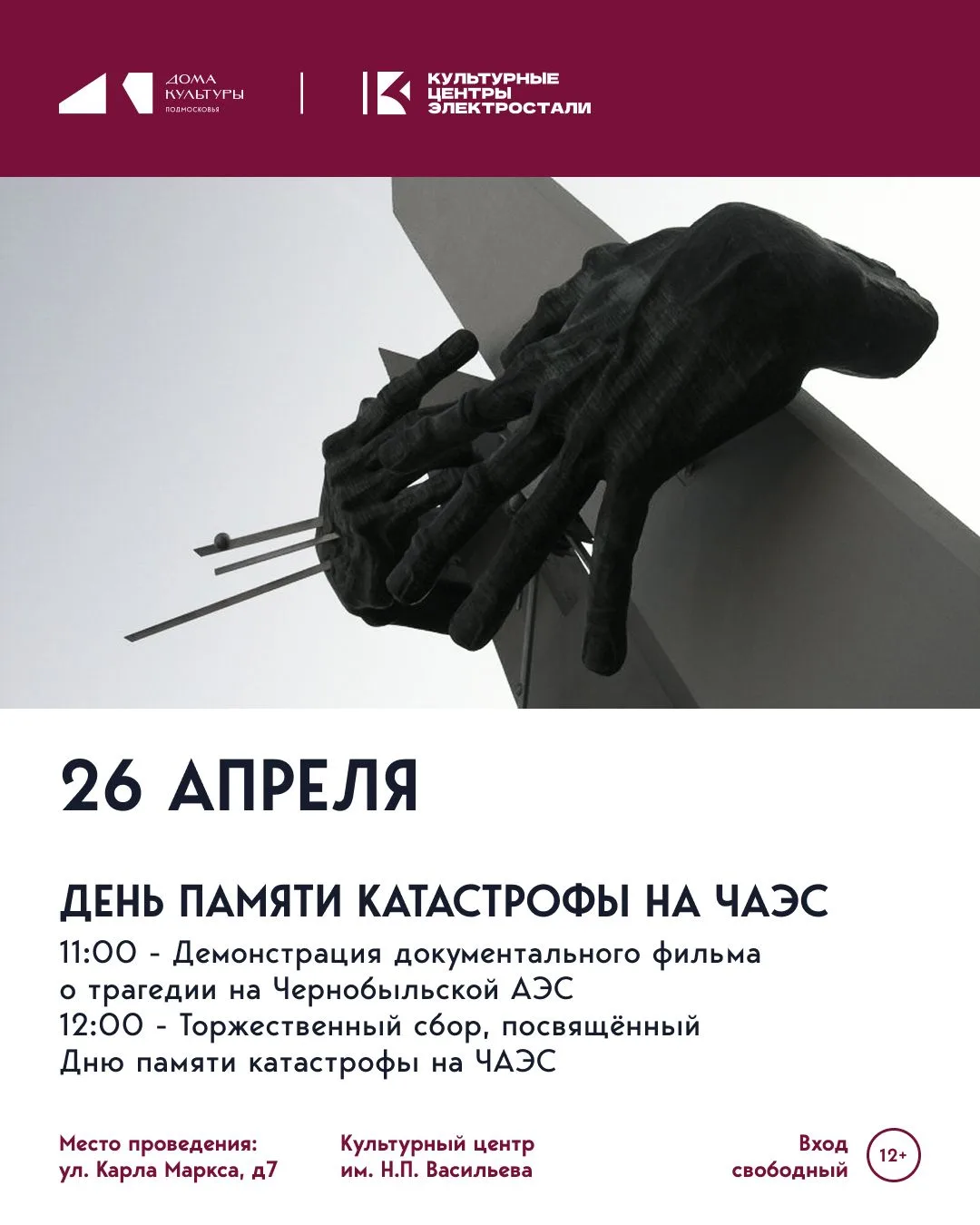 Культурный центр им. Н.П. Васильева приглашает всех, кто хранит память о самой страшной техногенной катастрофе XX века.