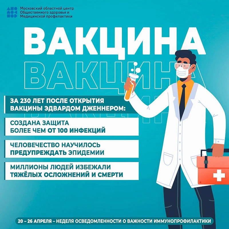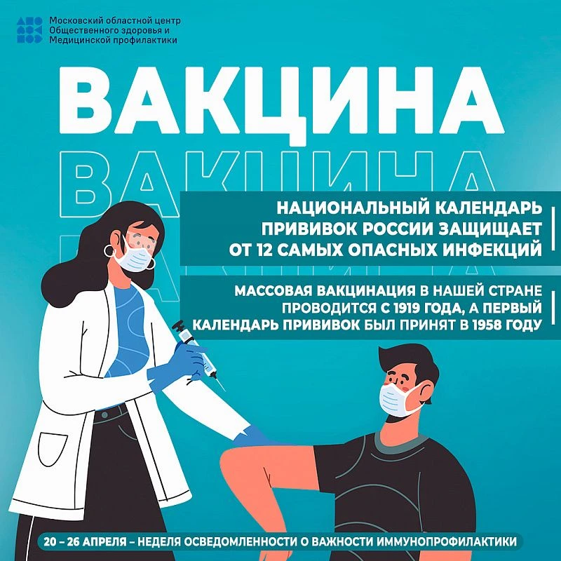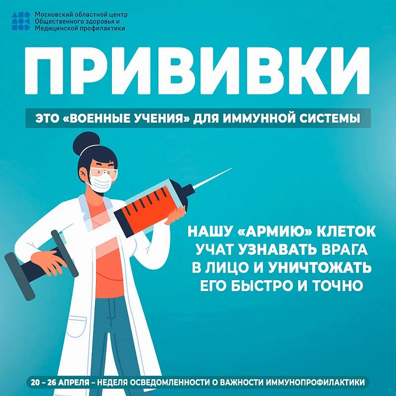 С 20 по 26 апреля Минздрав РФ проводит Неделю осведомлённости о важности иммунопрофилактики. Она приурочена к Всемирной неделе иммунизации (24—30 апреля), которая пройдёт под лозунгом: «Вакцины работают для всех поколений».