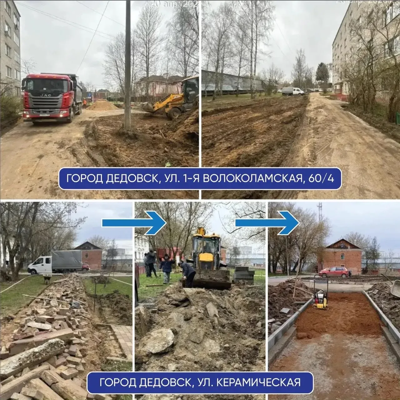 #прямосейчас работы ведутся в Дедовске на улице 1-я Волоколамская, дом № 60/4. Подрядная организация уже вышла на объект. В рамках благоустройства здесь будет расширена проезжая часть, проведён ремонт асфальтового покрытия, организованы парковочные пространства с нанесением разметки, а также обновлено игровое пространство для юных жителей.