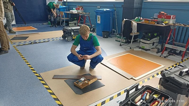 По его словам, мастера учатся разным навыкам работы с напольными покрытиями, среди которых укладка ламината палубным способом, «елочкой», с разными дизайнерскими решениями. Есть еще модуль, посвященный коммерческим напольным покрытиям. Это необходимо для школ, больниц, спортзалов, столовых и помещений, где есть повышенное требование к чистоте и дезинфекции. Существует модуль, посвященный специальным покрытиям в различных исследовательских помещениях. Всё это включено в процесс тренировки будущих профессионалов. Чемпионат позволяет подготовить качественного специалиста, способного укладывать материалы отечественного производства.