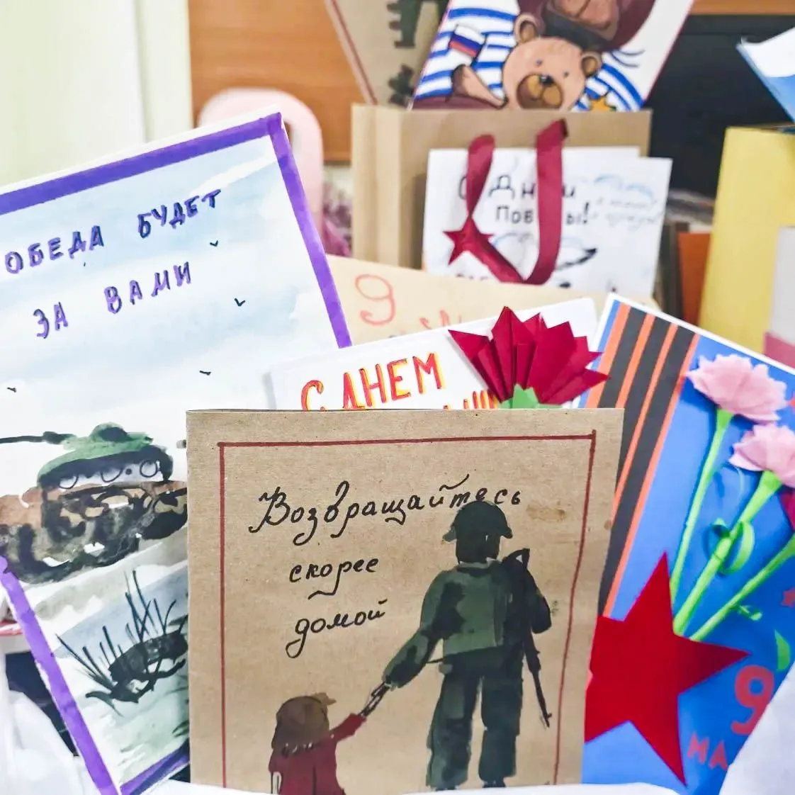 В преддверии Дня Победы образовательные учреждения г.о. Мытищи провели масштабную патриотическую акцию по сбору поздравлений. Воспитанники детских садов, школьники, педагоги и родители собрали 2 550 открыток и писем, в каждом - слова благодарности и теплые пожелания.