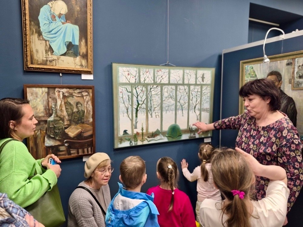 «Народы России ковали Победу» – этой теме была посвящены экскурсии по выставке живописи художников Пушкинского отделения Союза художников Подмосковья «Победы майское дыханье» в арт-галерее библиотеки.