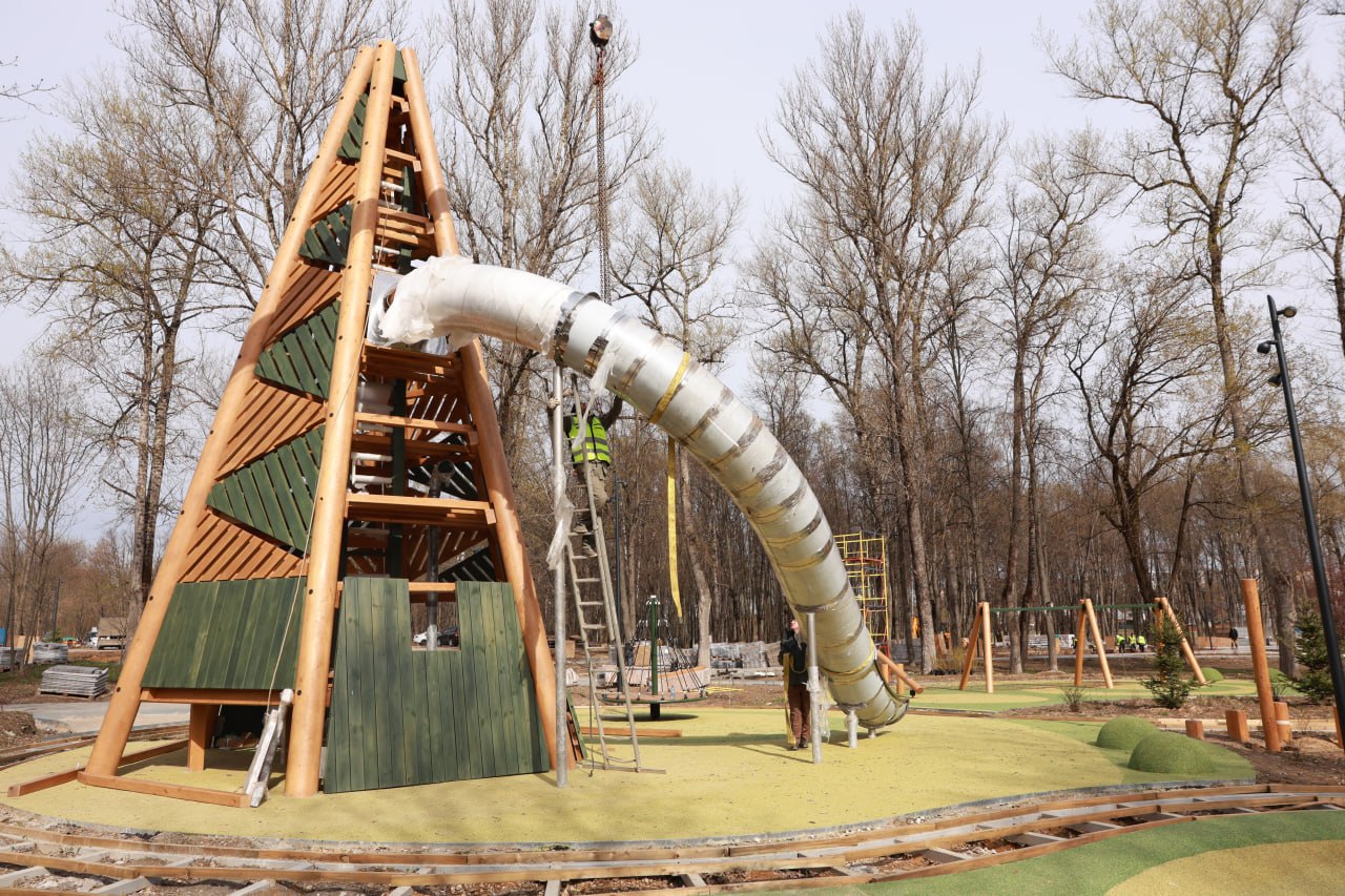 В парке появится площадка для игры в волейбол, теннисные столы, игровые, спортивные и воркаут-площадки, а также место для выгула собак. По всей территории обновят освещение, заменят ограждение, на центральной площади установят сцену, аттракционы и колесо обозрения, перенесут в новое место автогородок.