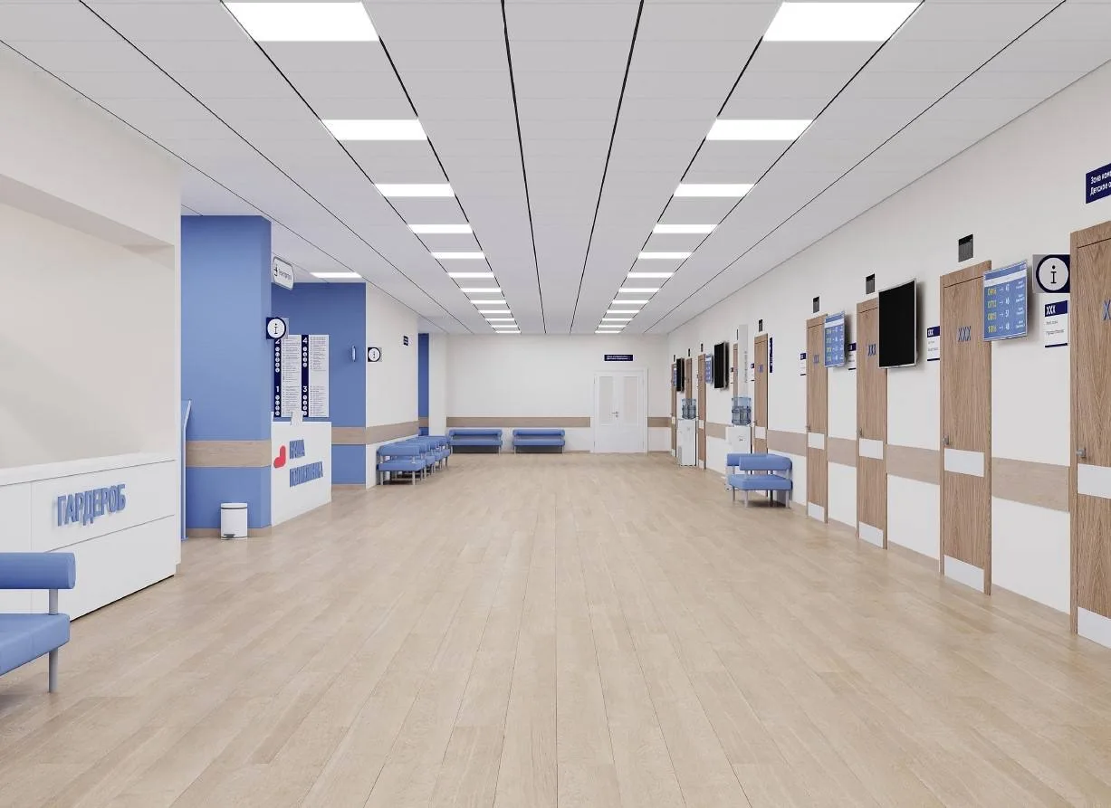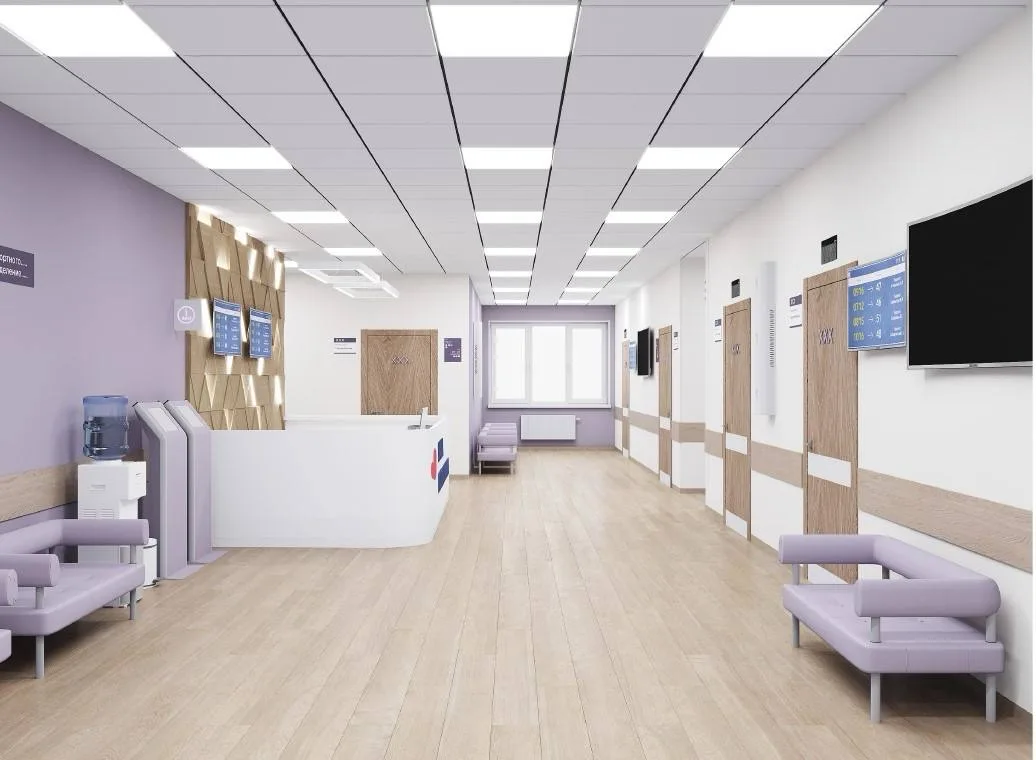 Здесь мы полностью заменили инженерные сети, сделали перепланировку помещения и расширили кабинеты врачей. Самые посещаемые из них разместим на первом этаже — это терапевт, кардиолог, невролог. После ремонта здесь будут работать порядка 140 специалистов. Сохраним все узкие направления: эндокринологию, офтальмологию, гастроэнтерологию, и добавим к ним кабинеты пульмонолога и аллерголога-иммунолога. Появится собственная операционная для малоинвазивных вмешательств.