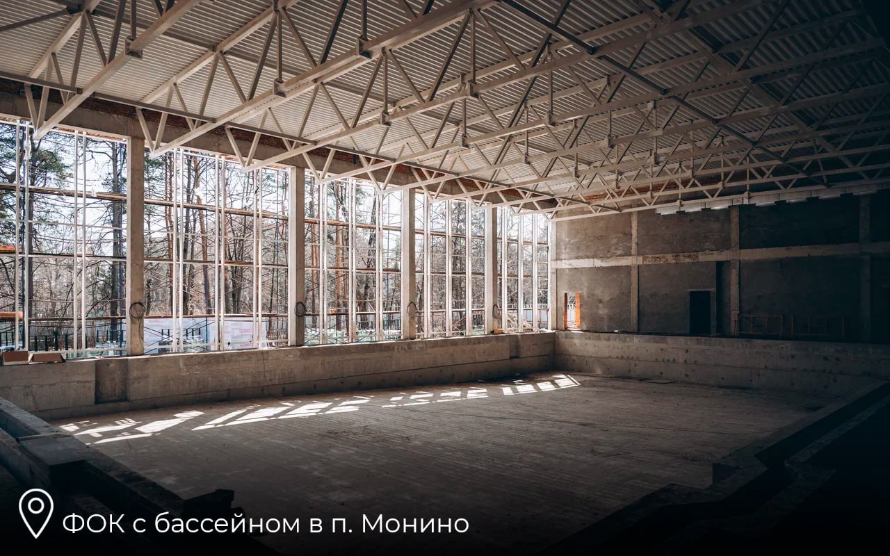 Еще один важный спортобъект в Монине – ФОК с бассейном. Его возводят на месте старого аварийного здания, снесенного в 2024-м. ФОК станет базой для школы олимпийского резерва, а также точкой притяжения для жителей всех возрастов. Стройготовность – 45%. Полностью закончить работы планируется до конца года.