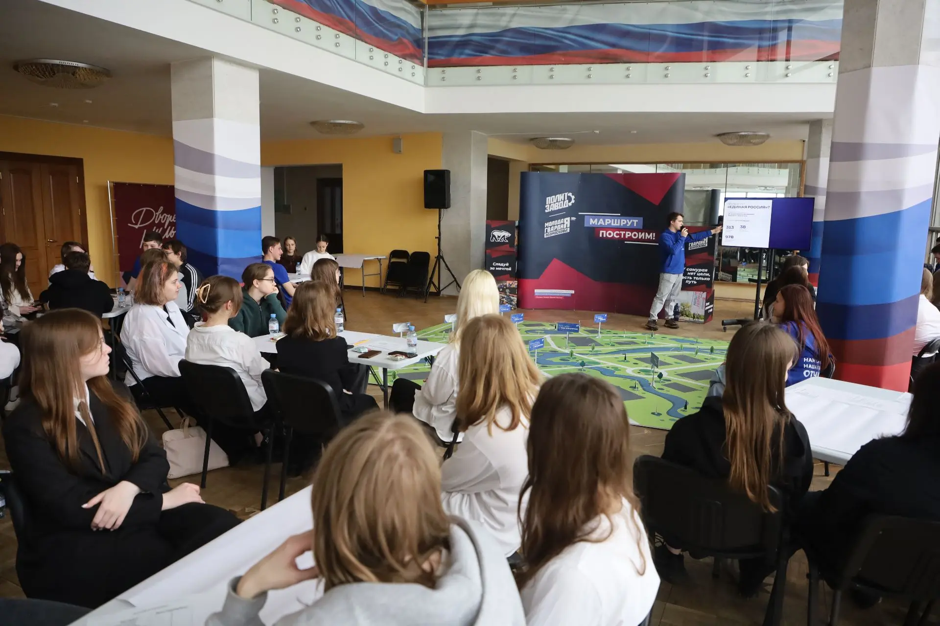 Во Дворце культуры «Россия» прошла деловая игра «Город пЕРемен» при поддержке депутата окружного Совета, руководителя Московского областного регионального отделения «Молодой Гвардии» Дианы Алумянц.