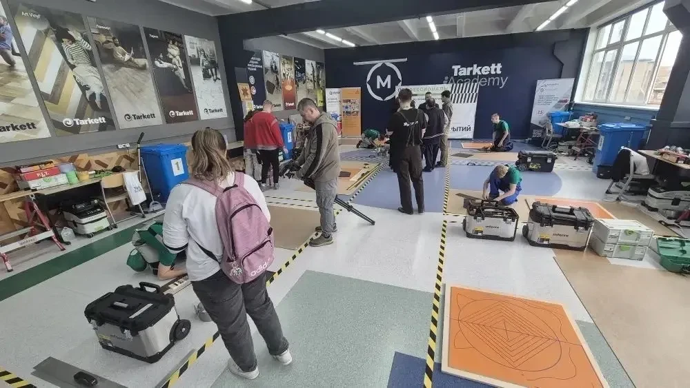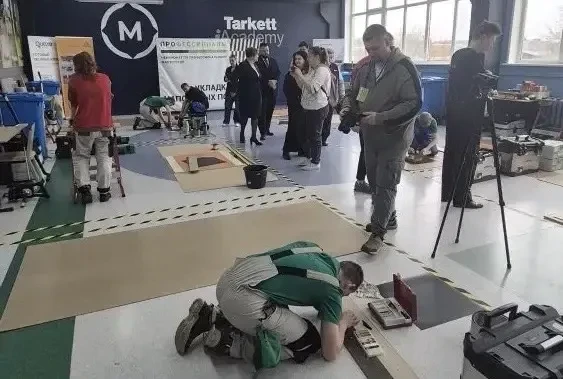 Ветеранам и молодежи продемонстрировали современные технологии, которые сегодня востребованы на рынке труда: укладка ламината палубным способом и «елочкой», работа с коммерческими покрытиями для школ, больниц и спортзалов, а также монтаж специальных покрытий для исследовательских помещений.