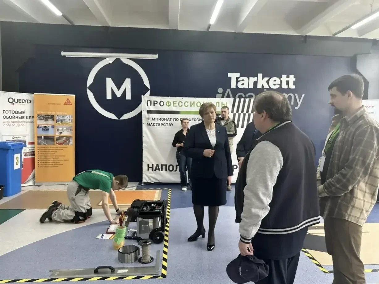 Для гостей организовали специальный показ новых компетенций. Участники экскурсии увидели, как студенты из Ульяновска, Краснодара, Набережных Челнов, Новосибирска, Москвы и Подмосковья соревнуются в укладке напольных покрытий.