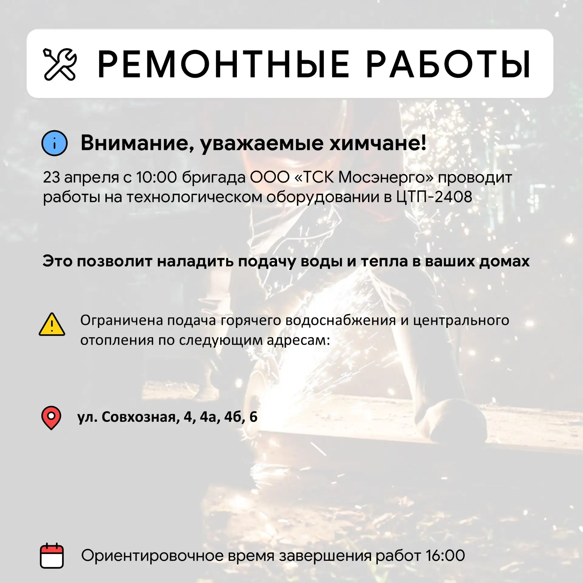 Информацию о работе ресурсоснабжающей организации можно получить по номерам горячей линии: