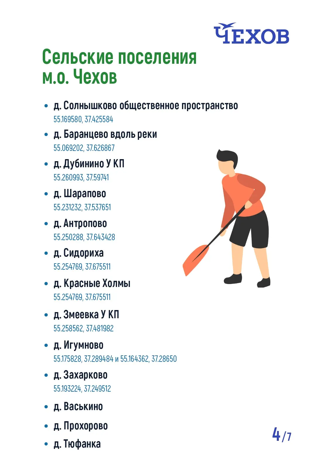 К нам присоединятся жители сел и деревень. С полным списком адресов можно ознакомиться на каточках или по ссылке.