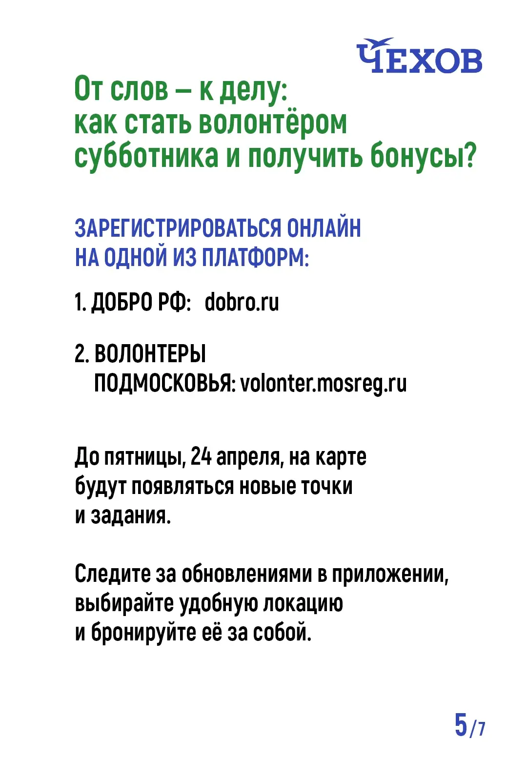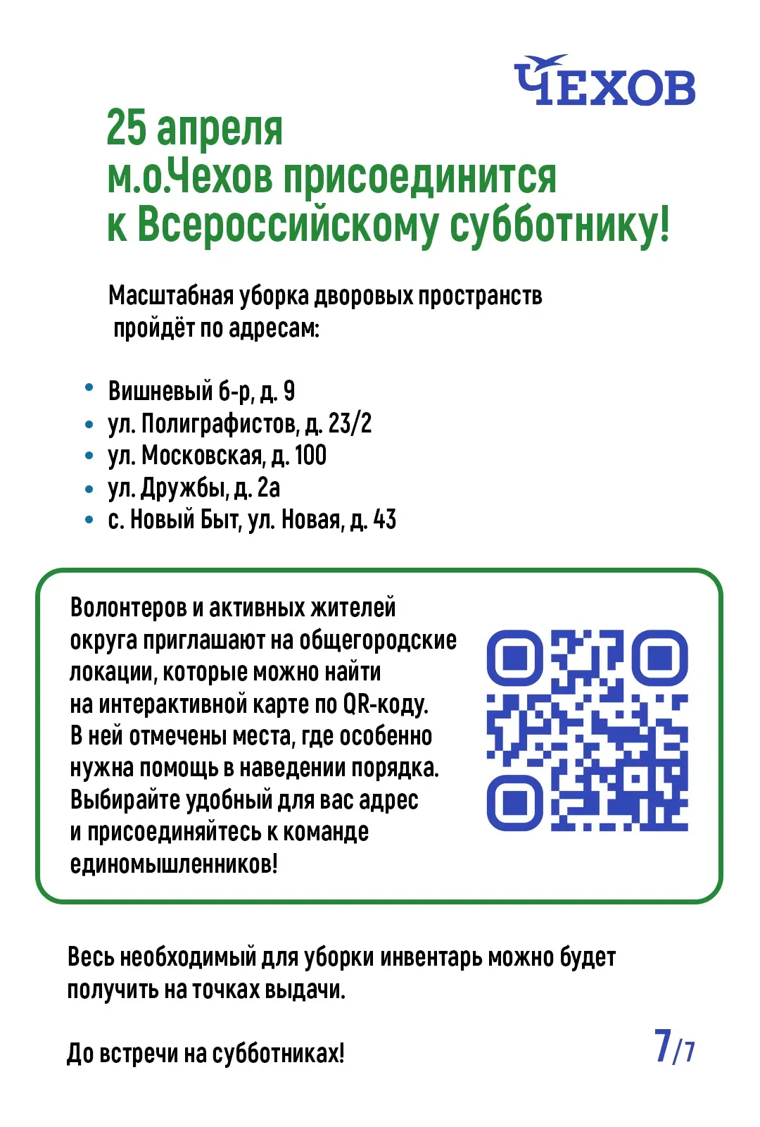 25 апреля наш муниципальный округ Чехов присоединится к Всероссийскому субботнику!