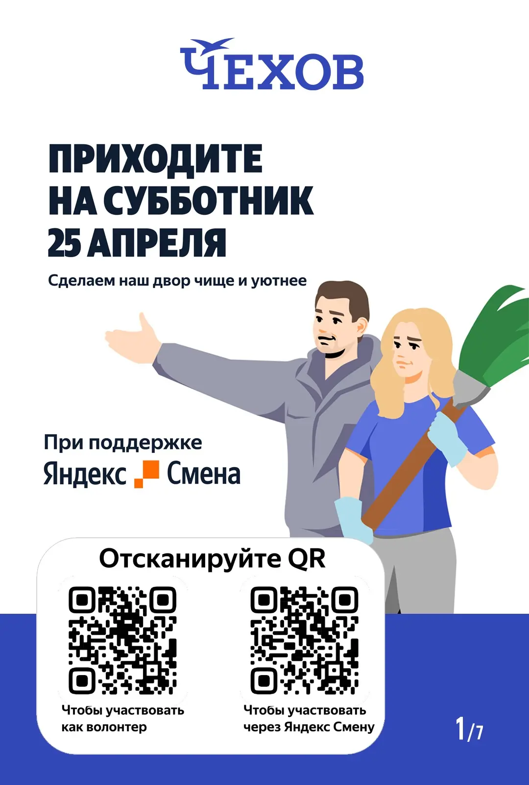 Зовите с собой друзей, семью, коллег и знакомых - вместе мы сможем сделать наш округ чище и создать приятную атмосферу.