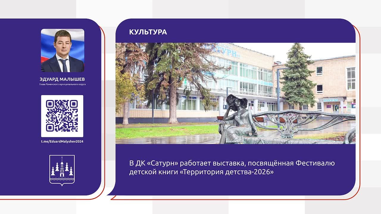 В ДК «Сатурн» работает выставка, посвящённая Фестивалю детской книги «Территория детства-2026»
