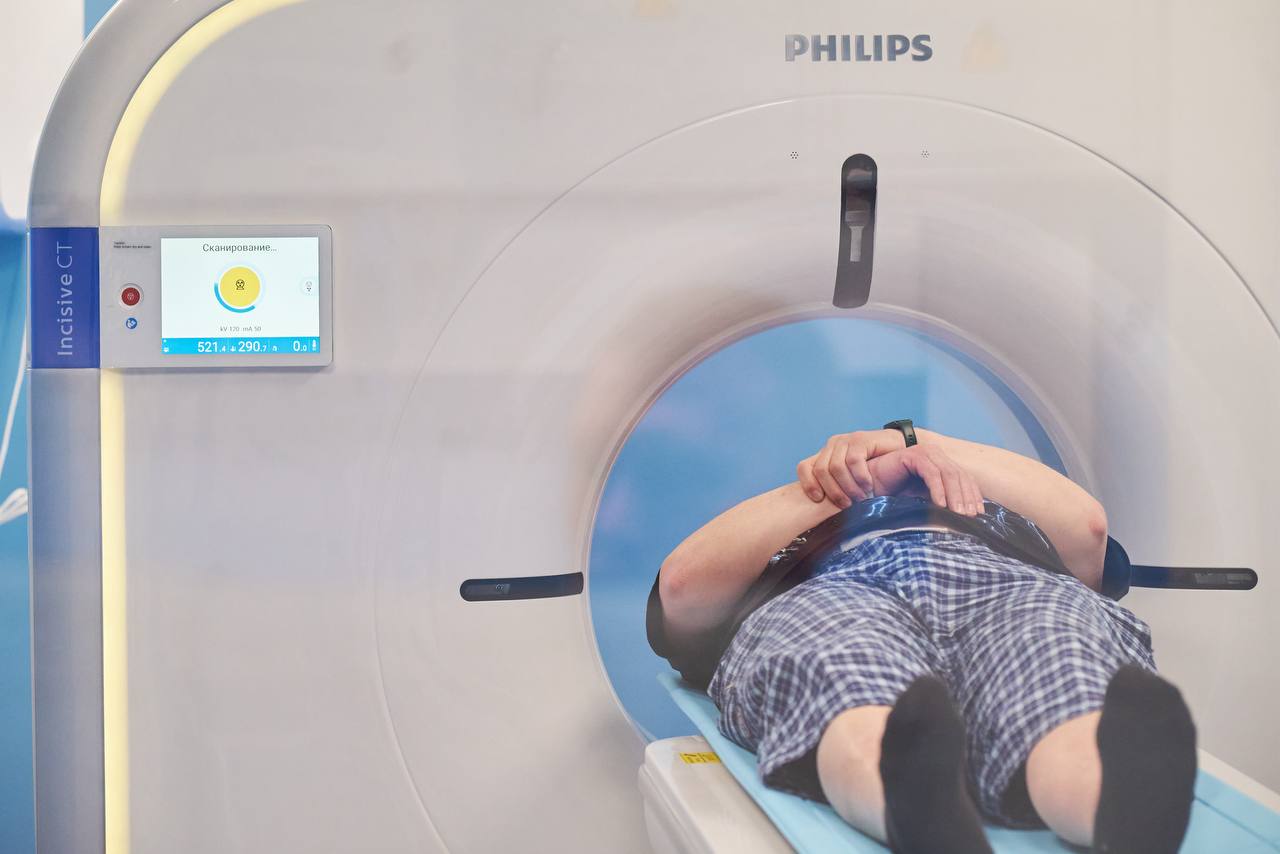 Аппарат позволяет проводить более точные исследования, в том числе КТ-перфузию — оценку кровотока в сосудах головного мозга, что важно для своевременного выявления инсульта.