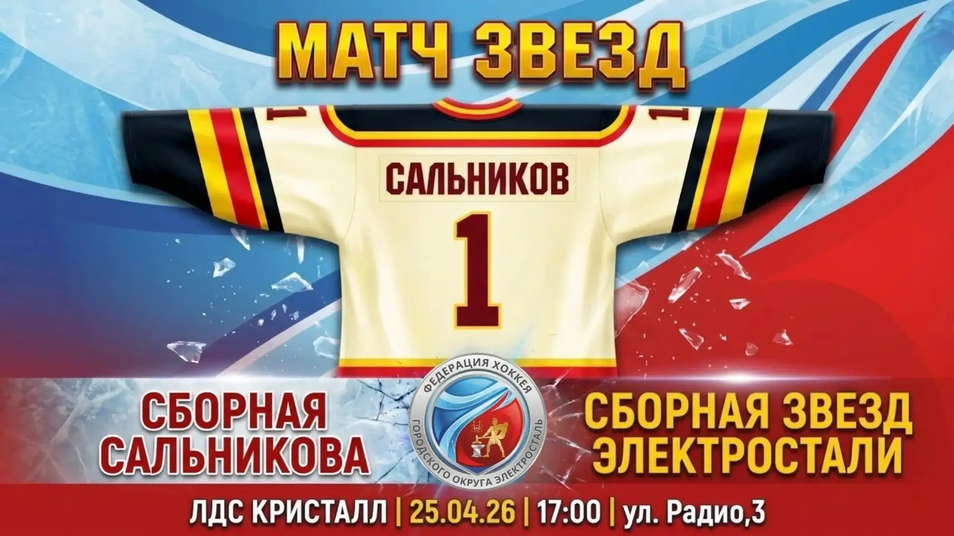 На льду ЛДС «Кристалл» сойдутся «Сборная Сальникова» и «Сборная звезд Электростали».