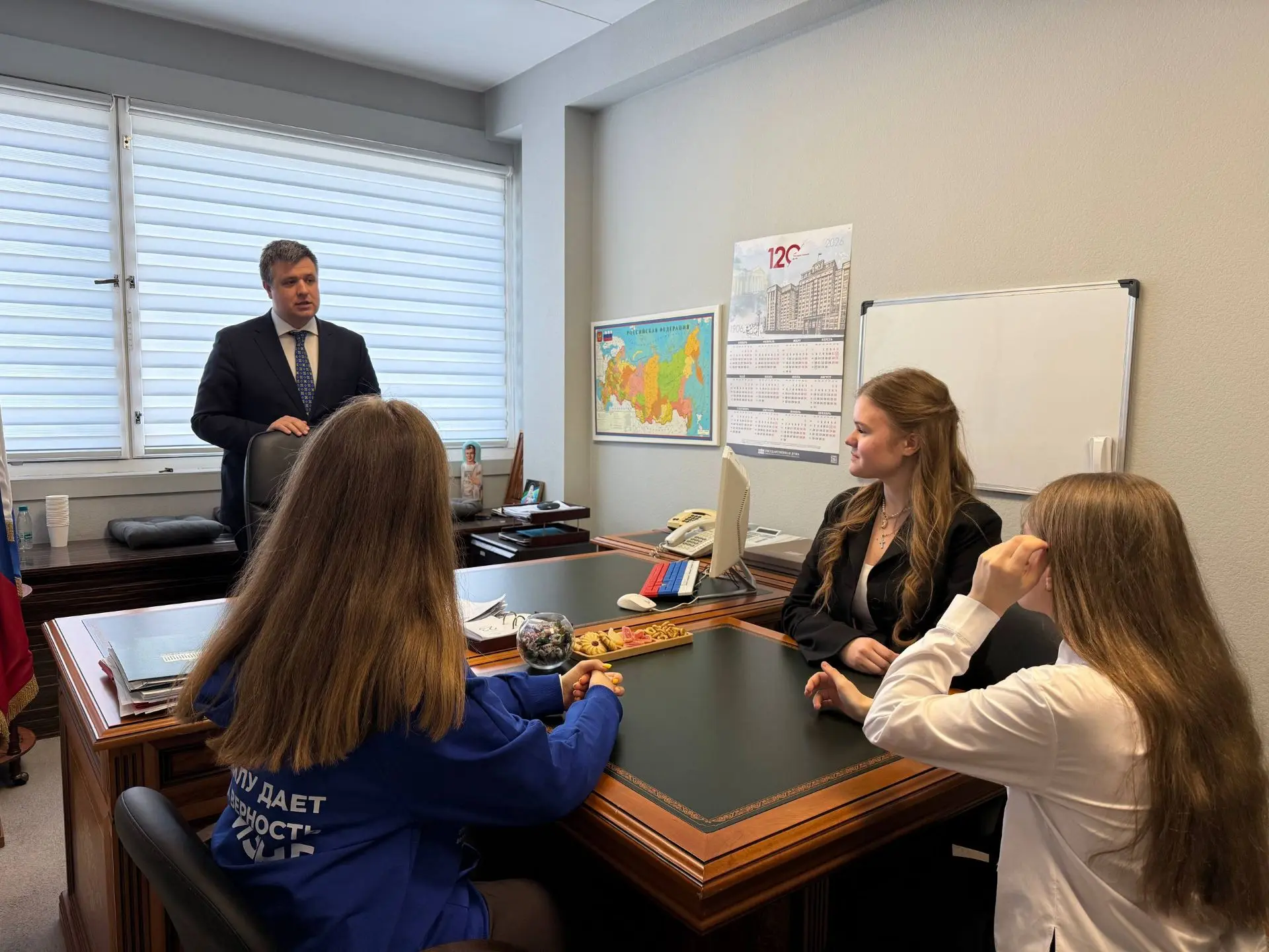 Молодогвардейцы смогли задать интересующие их вопросы и пообщаться с Александром Толмачёвым, а также посетить его рабочий кабинет.