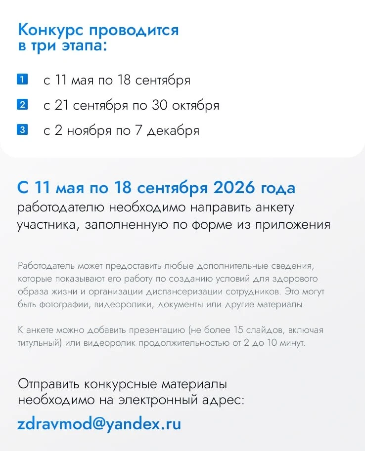 «Конкурс проводится для того, чтобы поддержать и поощрить работодателей, которые действительно заботятся о здоровье своих сотрудников: создают благоприятные условия в коллективе, помогают персоналу вовремя проходить диспансеризацию и профилактические медицинские осмотры. Важно отметить, что речь о мероприятиях, утверждённых Приказом Министерства здравоохранения РФ №404н», – отметил председатель Комитета по социальной политике и здравоохранению Андрей Голубев.
