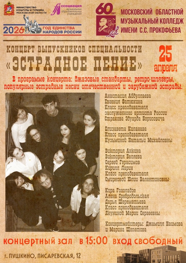 25 апреля в Московском Областном Музыкальном Колледже имени С.С Прокофьева пройдет концерт выпускников специальности «Эстрадное пение»