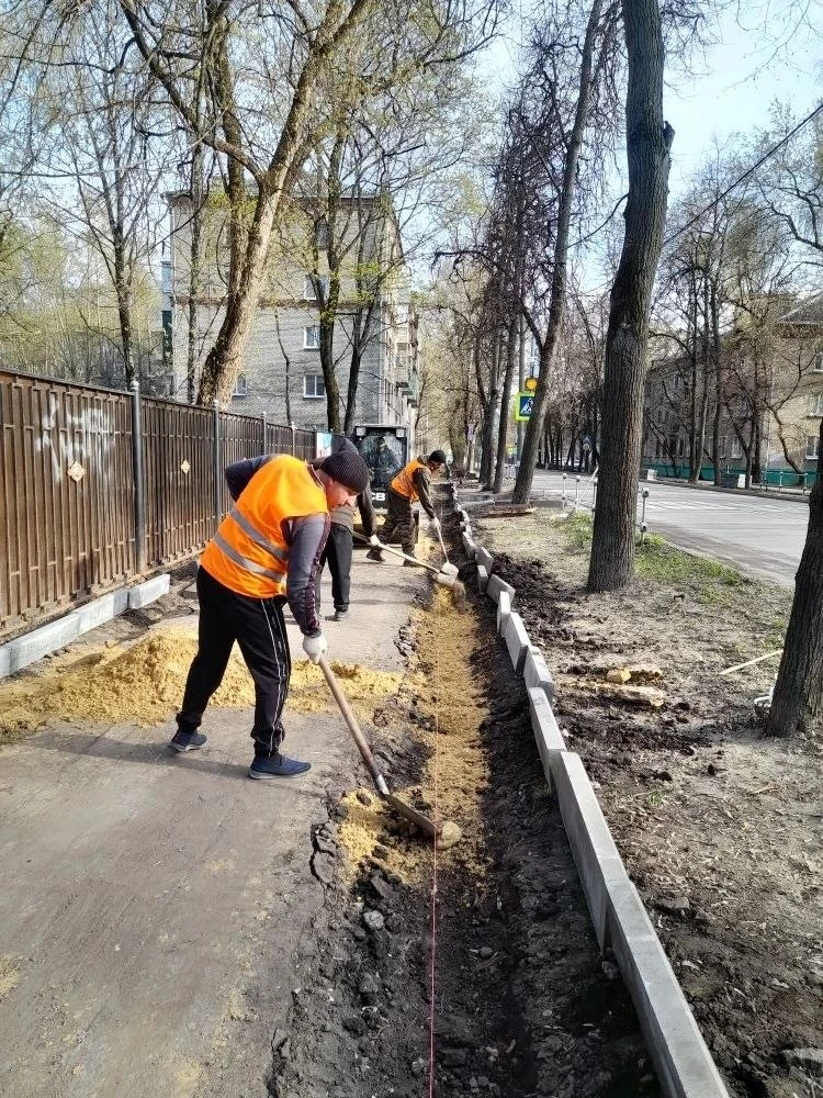 На двух улицах в Люберцах меняют бортовые камни и готовят основания для тротуара