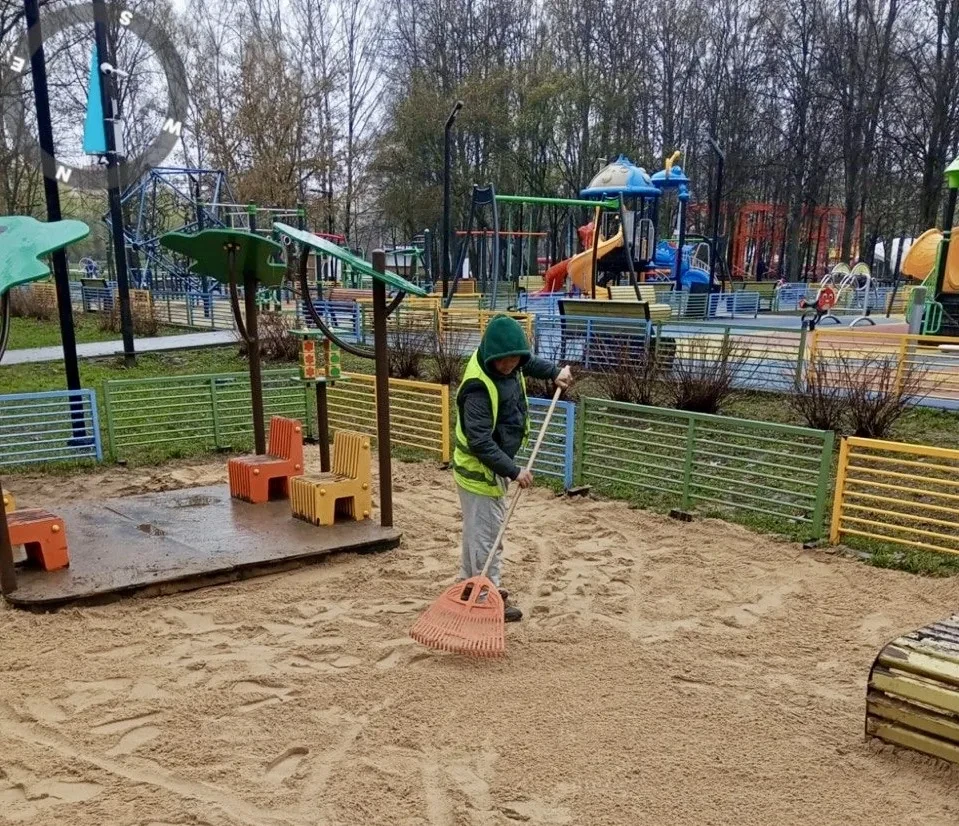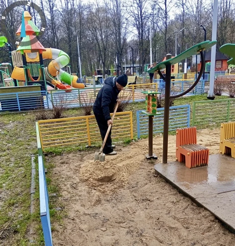 В Центральном парке Победы начаты работы по засыпке песка на детских игровых площадках (ДИП).