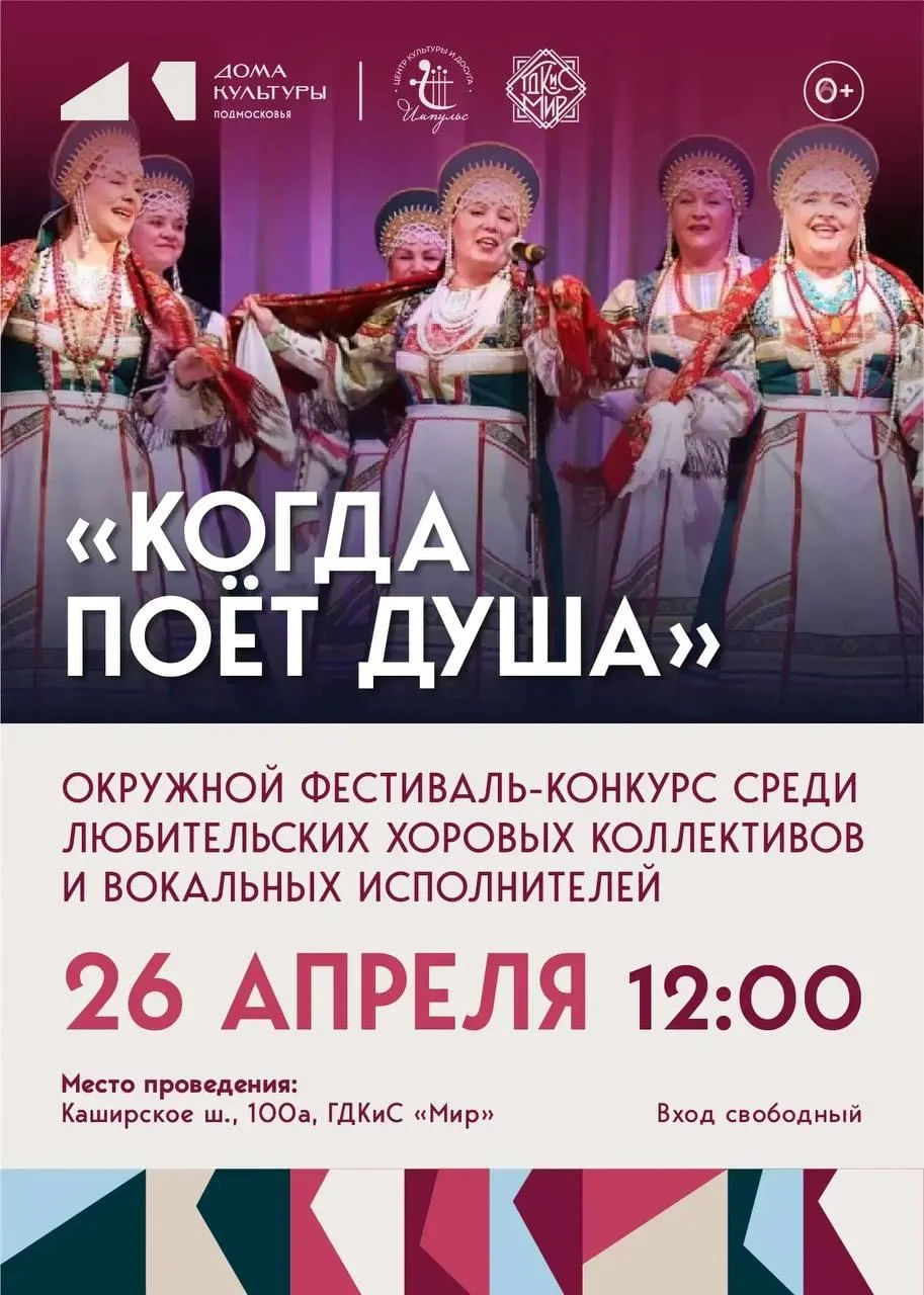 Дворец культуры «Мир» приглашаетвас на одно из самых душевных и тёплых событий этой весны — фестиваль-конкурс «Когда поёт душа»!