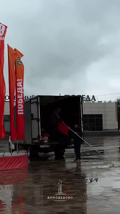 Несмотря на хмурую погоду и дождь Домодедово продолжает преображаться к самому главному празднику — Дню Великой Победы!