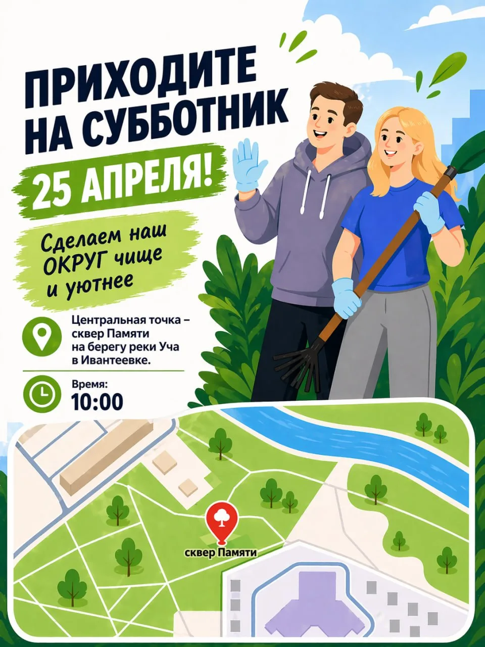 Максим Красноцветов: Уважаемые жители, 25 апреля в Пушкинском пройдет общеобластной субботник