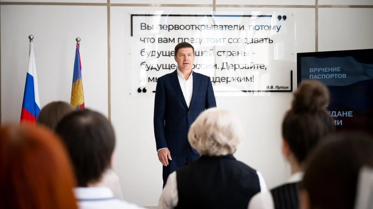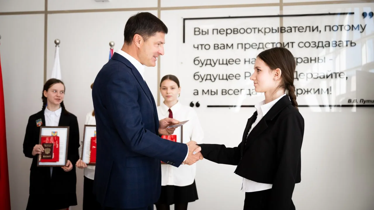 Глава муниципалитета Владимир Волков лично вручил документы учащимся, достигшим 14-летнего возраста.
