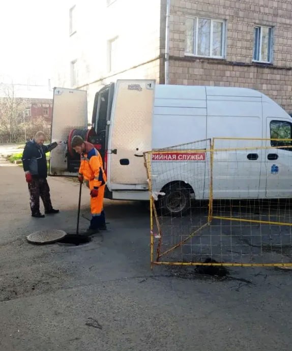 Промыли линию и выпуски из всех подъездов дома 20 по Надсоновской улице и промыли ливневую канализацию у дома 58 в мкр Серебрянка