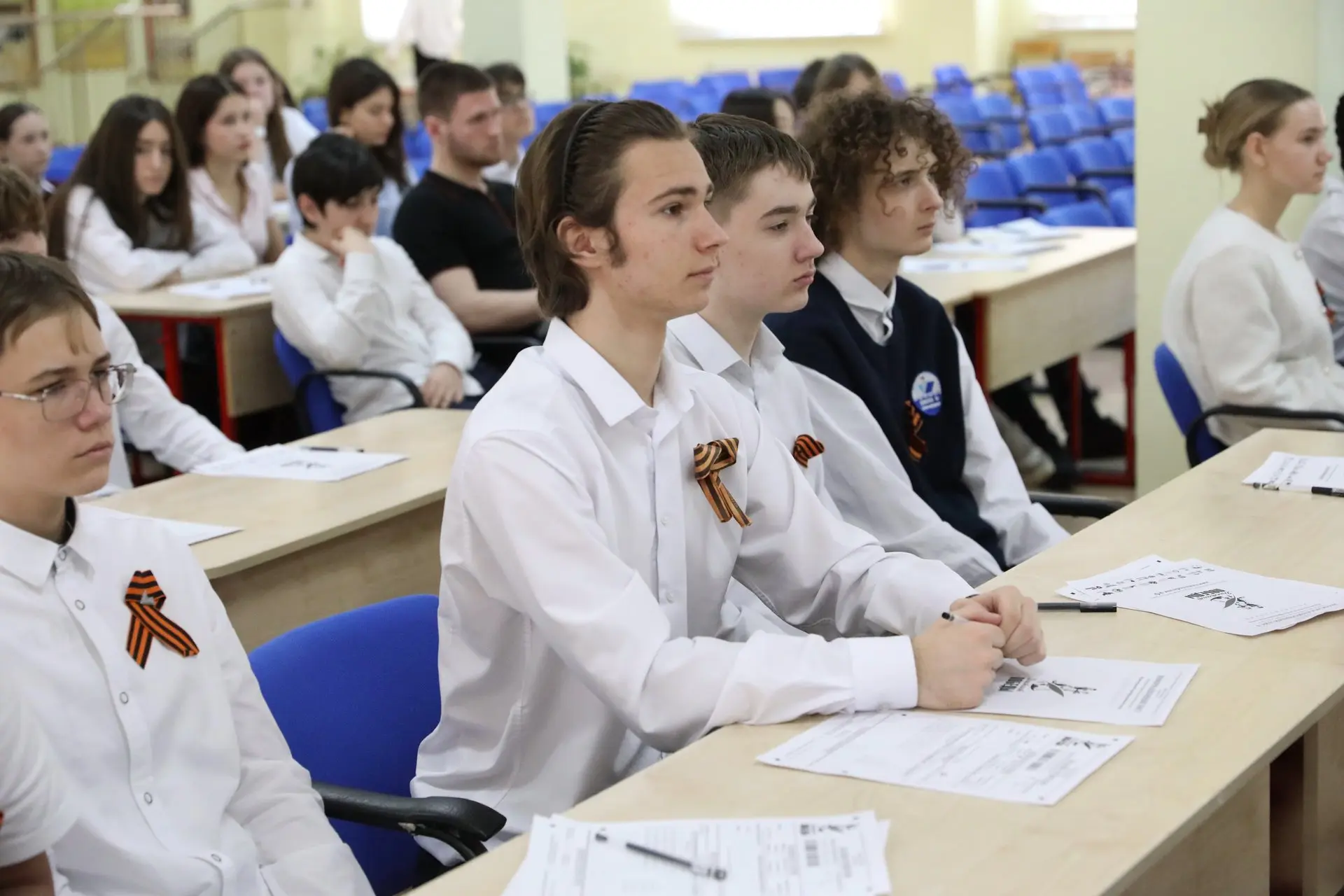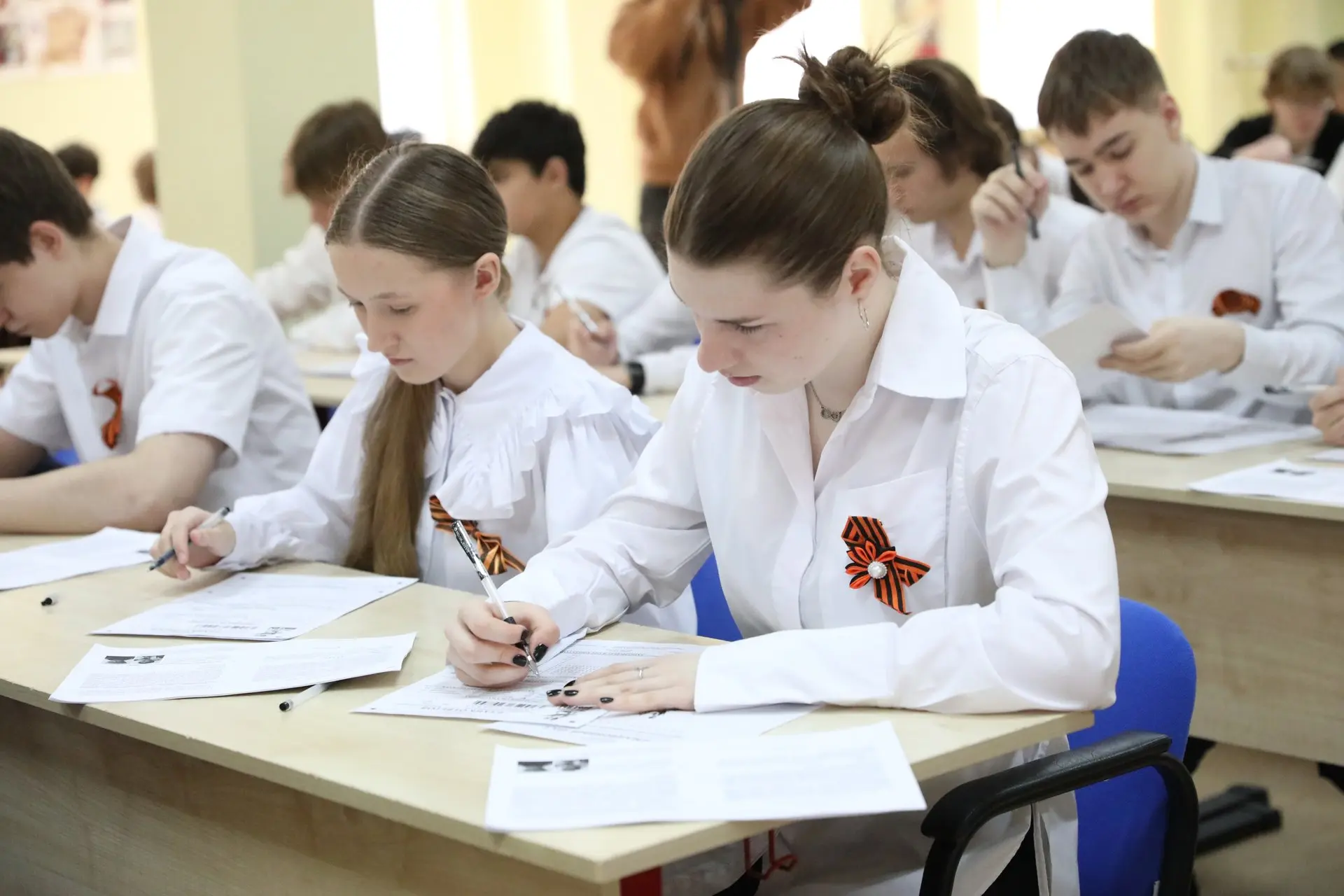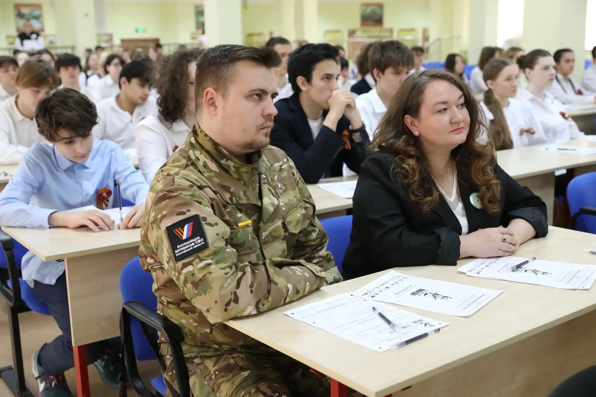 В школе №16 диктант писал глава г.о. Долгопрудный Олег Сотник. Здесь также сели за парты школьники, сотрудники администрации, депутаты, волонтёры, представители госфонда «Защитники Отечества», Ассоциации ветеранов СВО Долгопрудного и другие желающие.