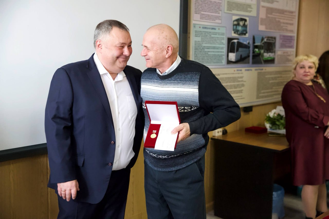Первым награду вручили Николаю Дмитриеву, водителю автобуса на регулярных городских пассажирских маршрутах 1 класса. Николай Николаевич – коренной подольчанин, на предприятии работает с 1977 года, без малого 50 лет. Воспитал троих сыновей, уже имеет десятерых внуков. За время работы как наставник обучил более 100 молодых специалистов. Сегодня за добросовестный труд и в честь юбилея был награжден знаком отличия «За заслуги перед Городским округом Подольск» 2 степени: