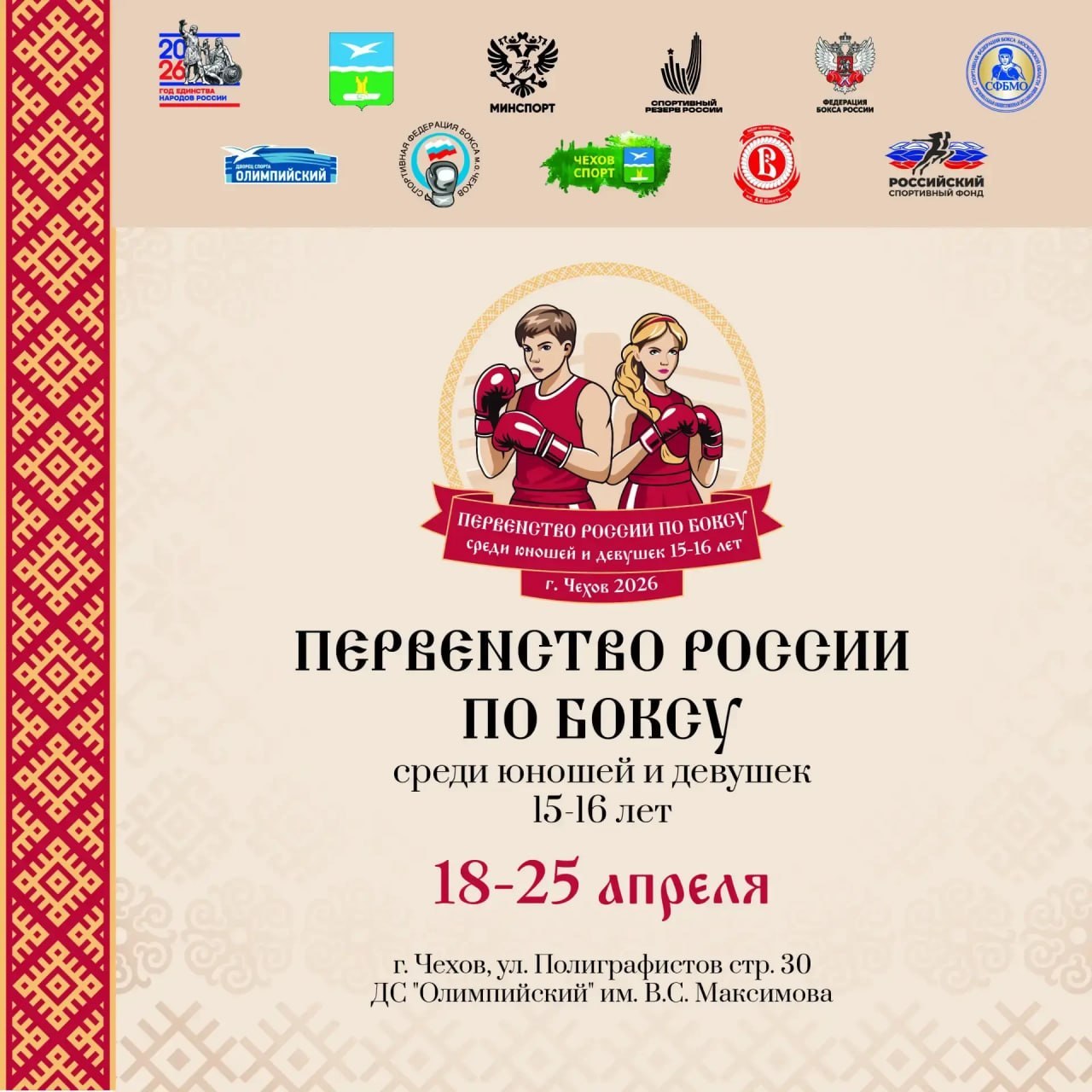 С 18 по 25 апреля среди юношей и девушек 15-16 лет. В турнире примут участие более 500 спортсменов, среди них 6 из Чехова.