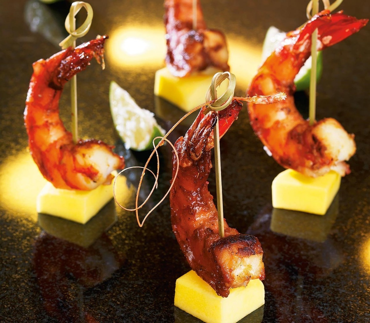 Креветки, обладающие утонченным вкусом, и сочное манго — отличное сочетание для создания яркой закуски, которая станет настоящим украшением любого стола. Такие шпажки не только легки в приготовлении, но и поражают своей эстетикой и вкусом. Вместо манго можно использовать ананас, а для большей оригинальности заменить креветки на раковые шейки. Так или иначе, это блюдо всегда найдет своих поклонников.