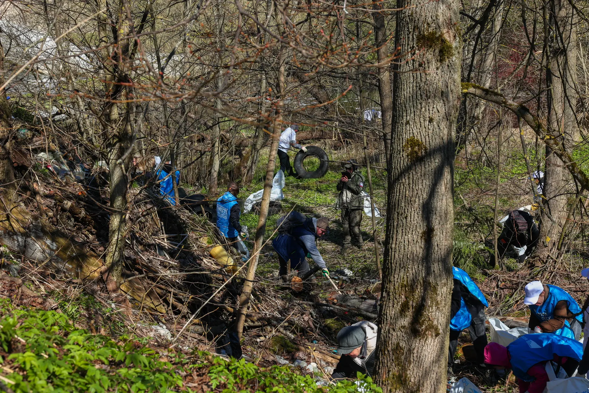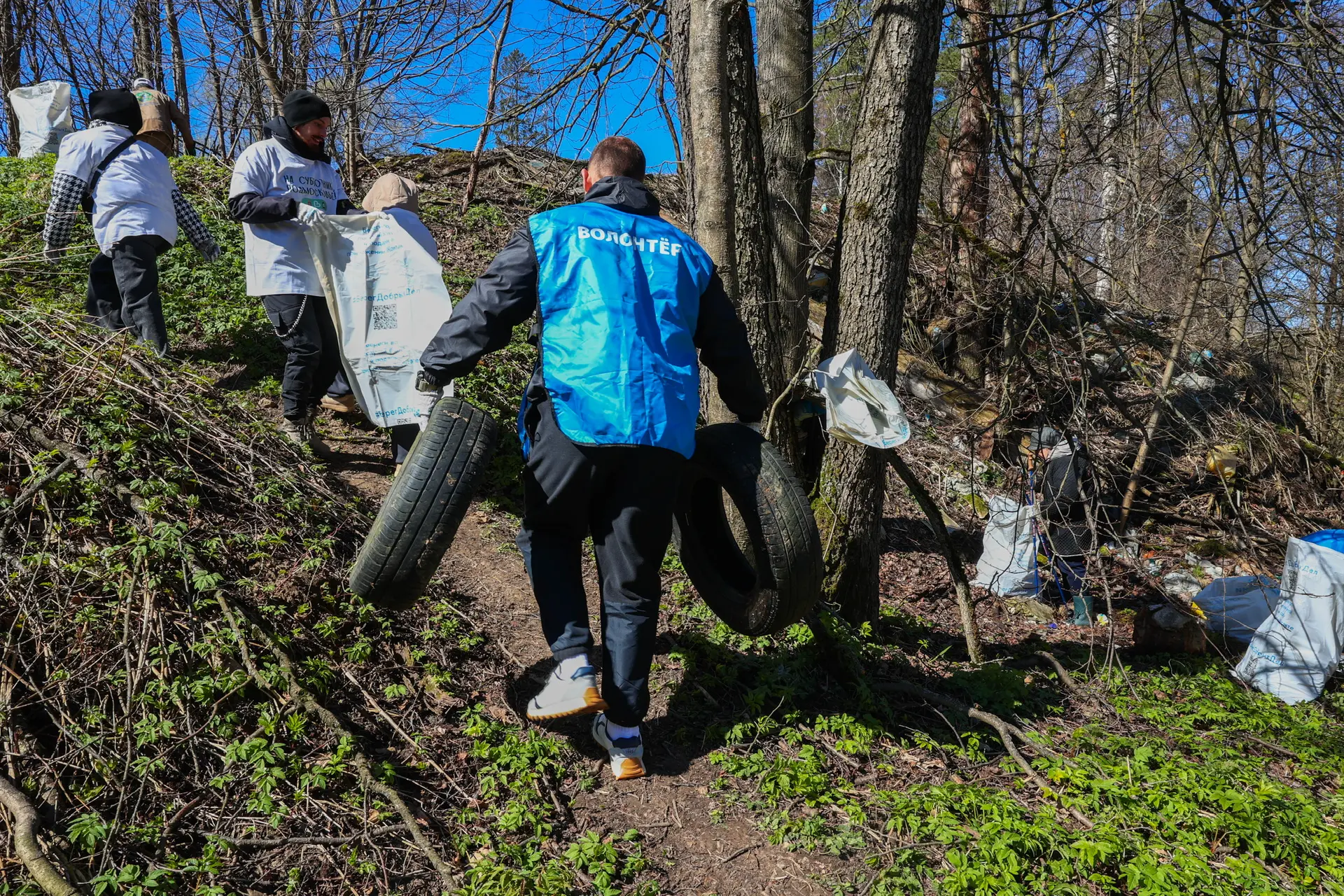 Работа оказалась непростой. Из-за природного рельефа здесь образовался склон, куда годами свозили бытовой мусор. Благодаря общим усилиям волонтёров и неравнодушных жителей было собрано более 30 кубометров мусора и большое количество резиновых покрышек.
